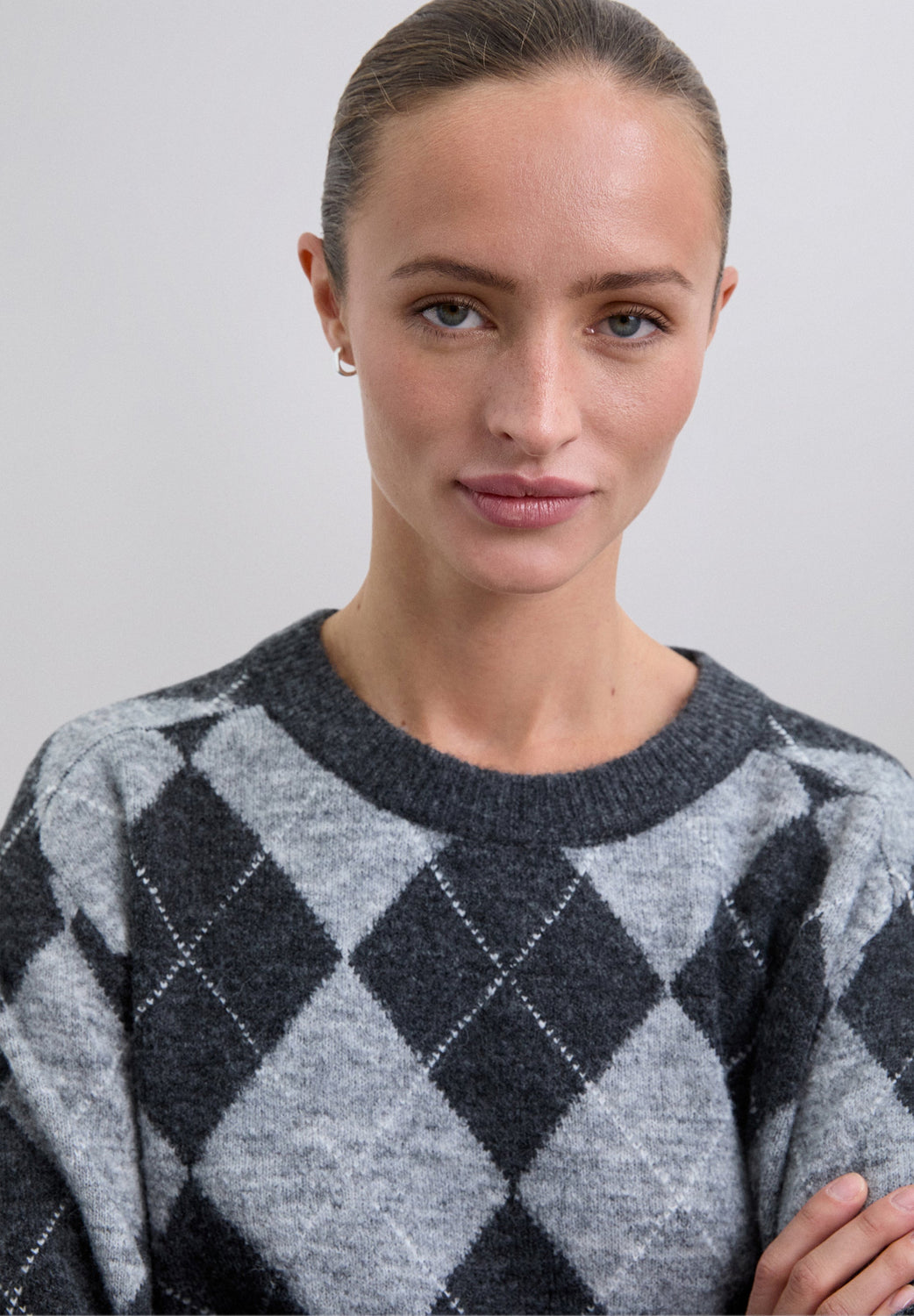 Sweater textura diamante confecionada em mistura com lã. Regular fit. Decote redondo e manga comprida com acabamentos em nervuras.