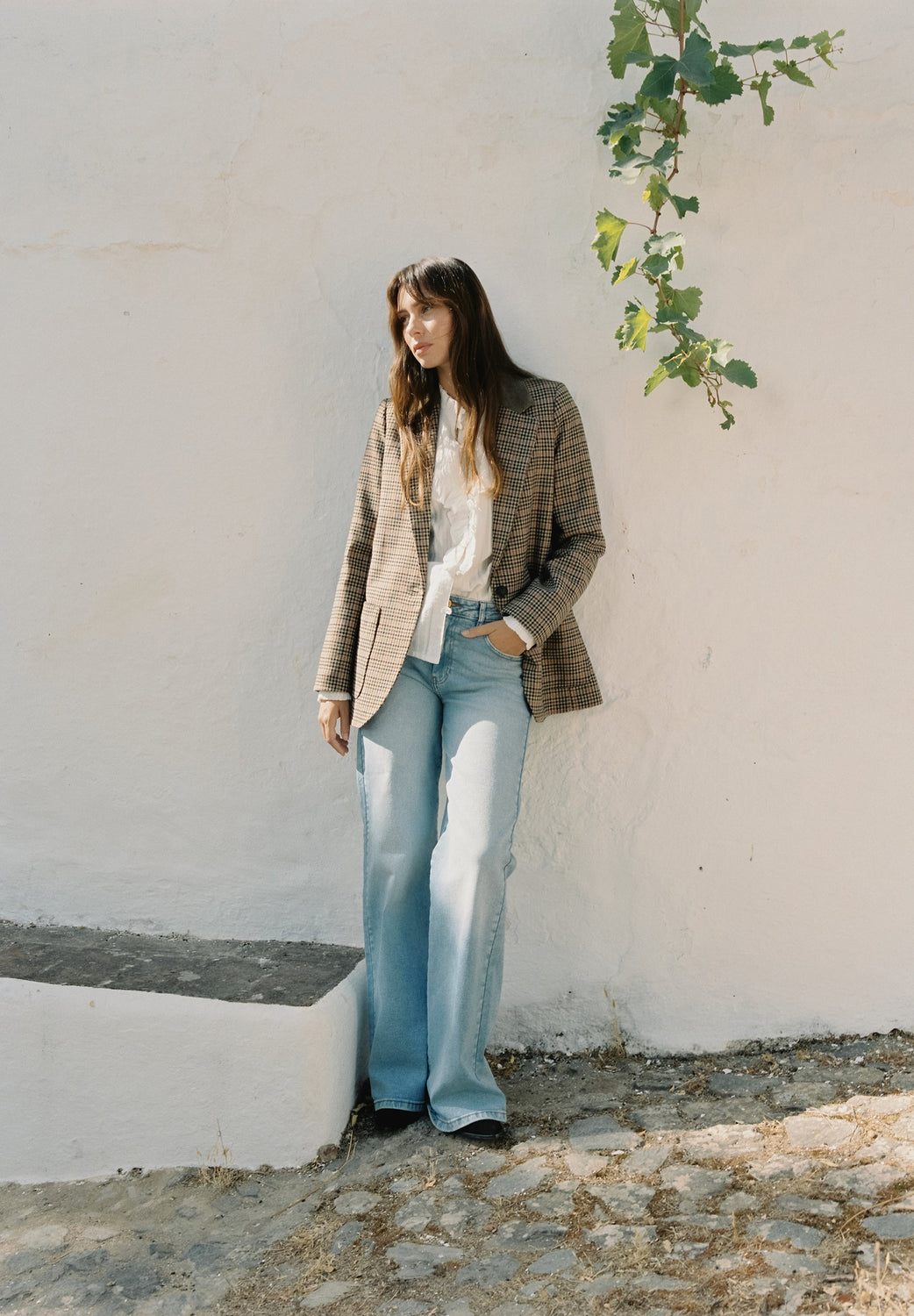 Blusa de manga comprida confecionada em 100% algodão. Colarinho clássico e folho em tecido favos de mel. Botões de nácar.