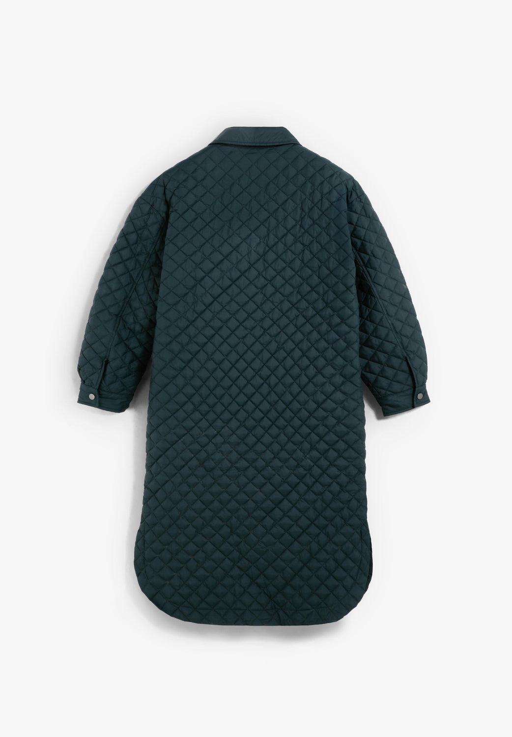 Casaco comprido acolchoado tipo puffer impermeável, com acolchoado em forma de textura diamante pequena. Manga comprida. Gola alta desmontável. Quatro bolsos à frente, dois em baixo e dois em cima com placket.