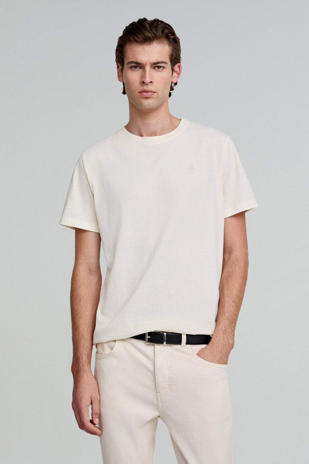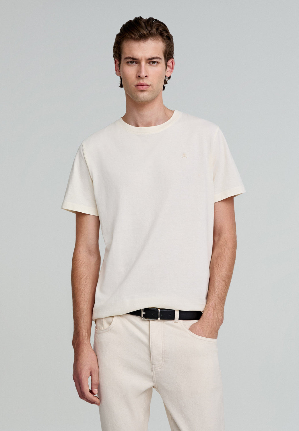Camiseta básica calavera bordada.
