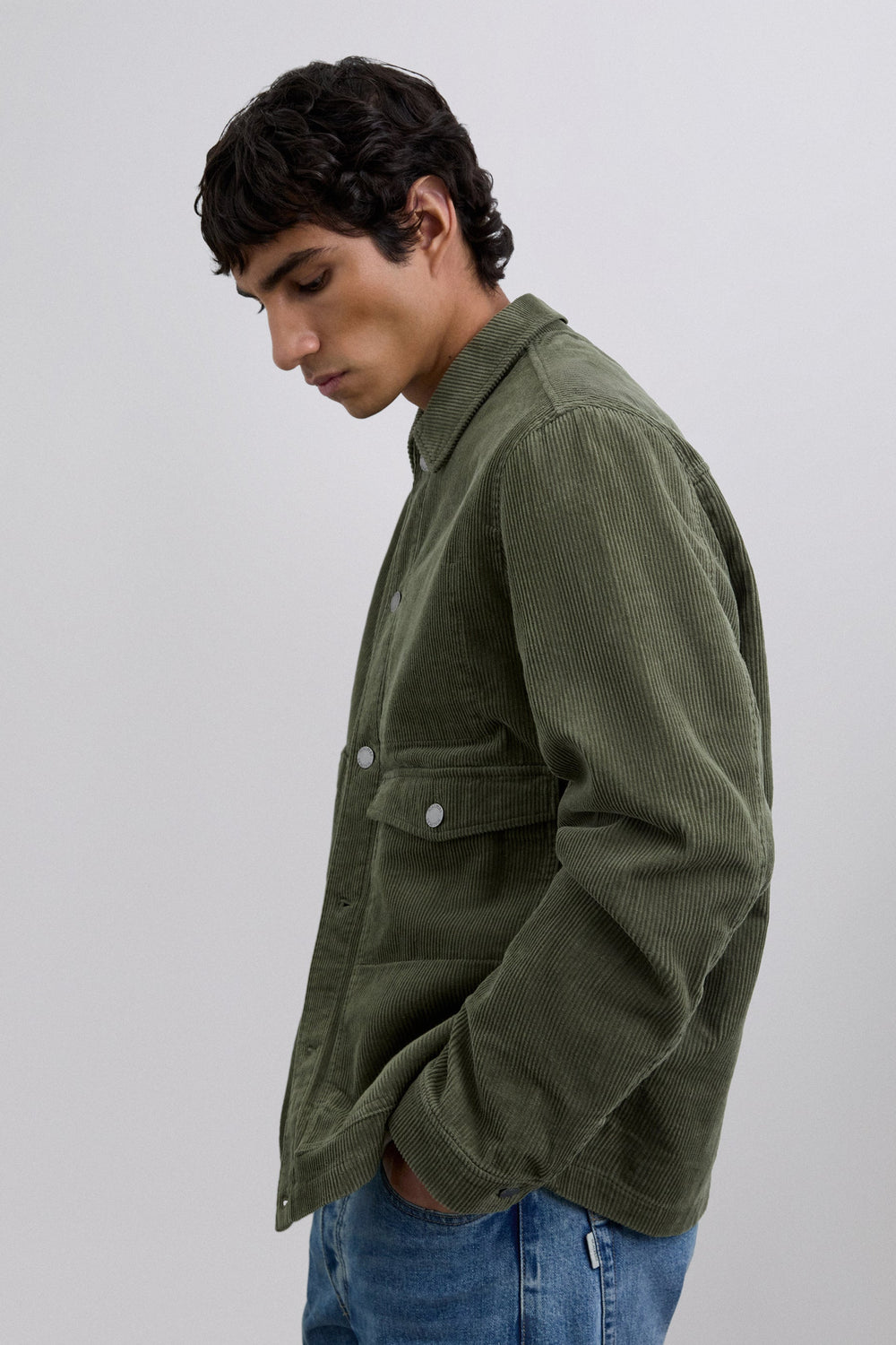 Camisa comprida de bombazina confecionada em 100% algodão BCI. Manga comprida. Gola de camisa. Fecho com botões à frente. Dois bolsos frontais com abas e design de remendo. Fecho no punho com botões. Pormenor de logótipo nos botões e na etiqueta.