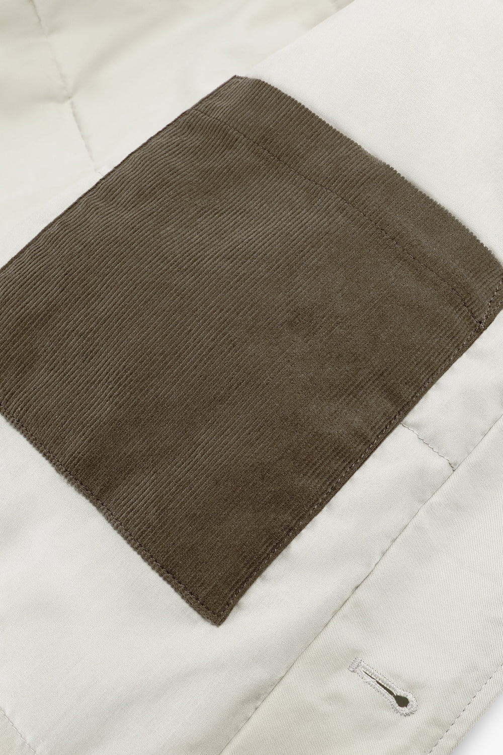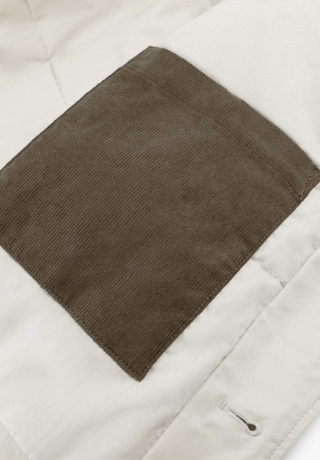 Cardigan confecionado em 100% algodão. Gola de bombazina em contraste. Fecho de botões. Bolso de remendo no peito e dois laterais com aberturas inclinadas. Manga comprida. Punhos com fecho com botões.