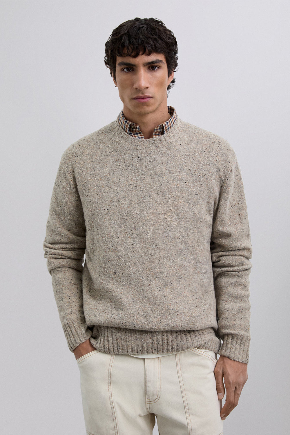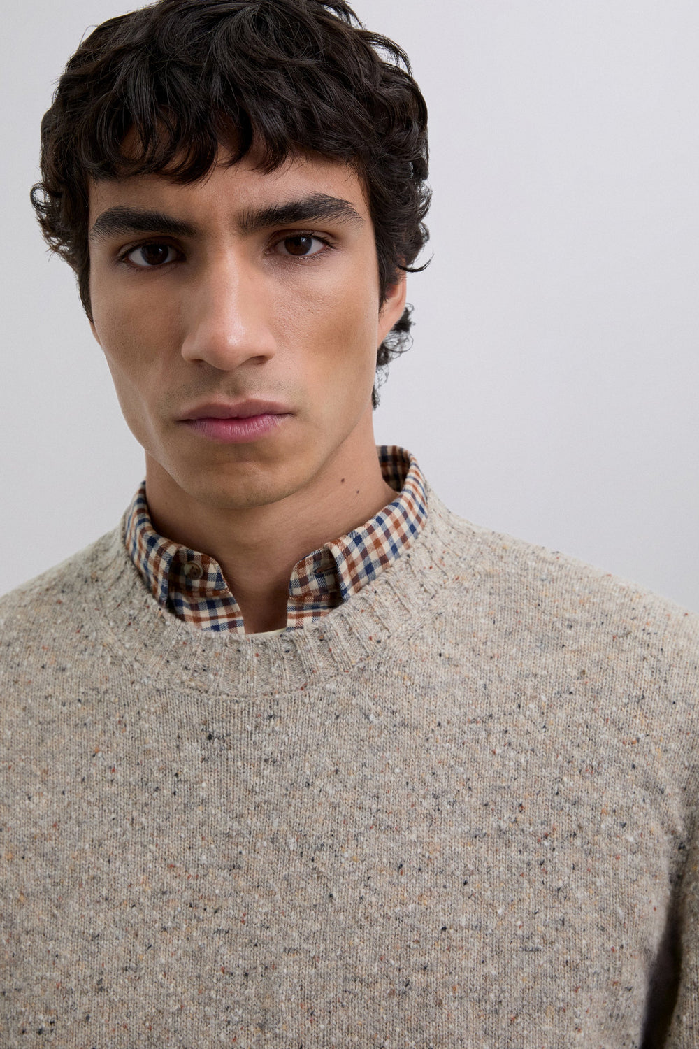 Camisola confecionada em lã. Regular fit. Decote redondo. Manga comprida. Acabamentos em nervuras. Pormenor de etiqueta bordada com logótipo no interior. Acabamentos em nervuras.