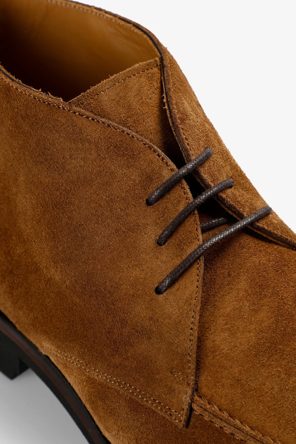 Botins confecionados em 100% pele de camurça. Fecho com cordões. Sola Vibram® de alto desempenho. Fabricado em Espanha.