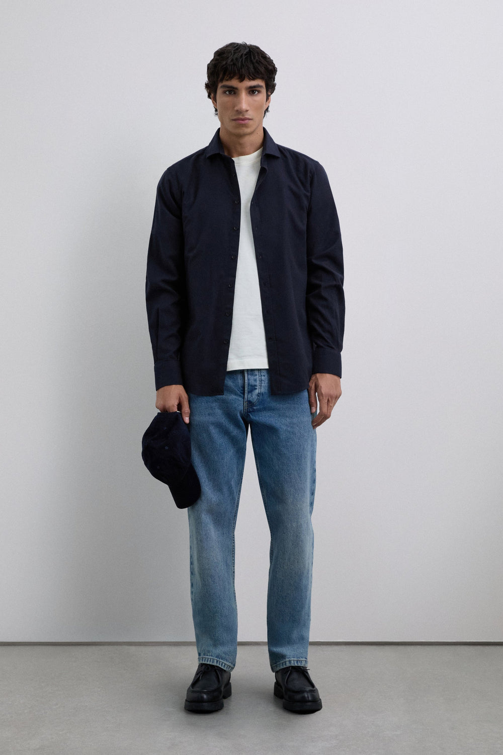 Camisa confecionada em tecido 100% algodão. Slim fit. Colarinho clássico. Abotoadura à frente. Manga comprida.