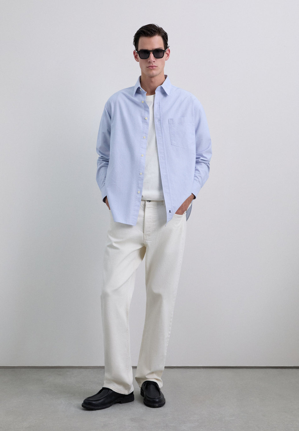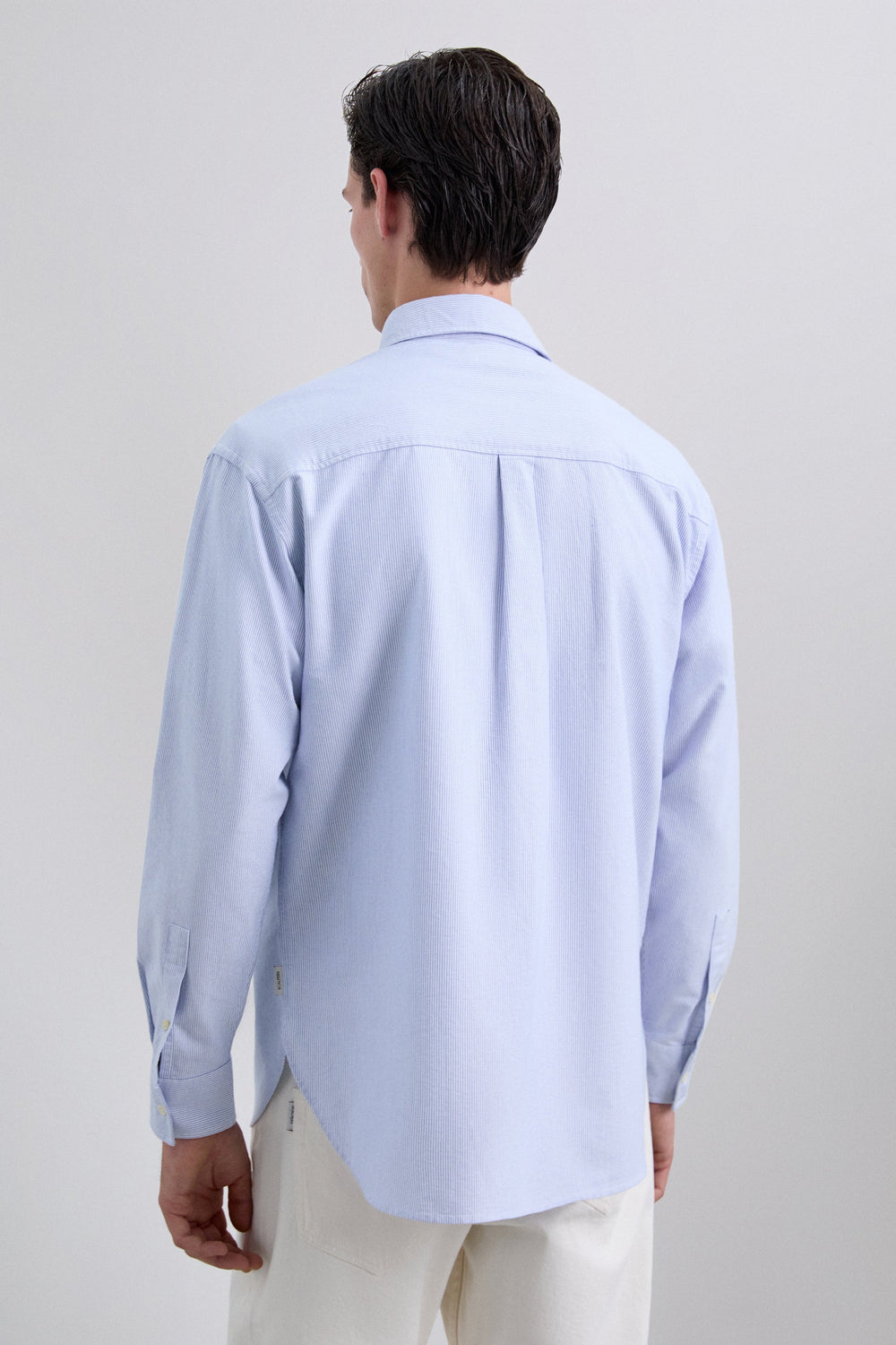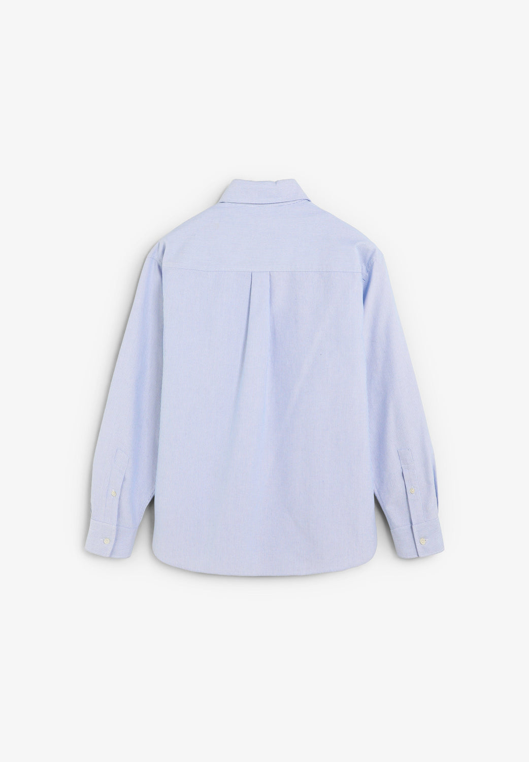 Camisa confecionada em tecido 100% algodão BCI. Padrão às riscas. Pormenor de bolso no peito. Manga comprida. Fecho frontal e nos punhos com abotoadura. Pormenor de skull bordada em contraste na parte inferior frontal.