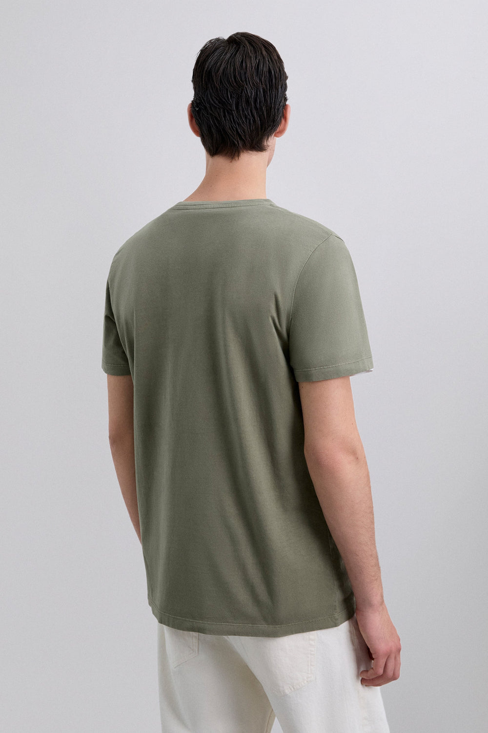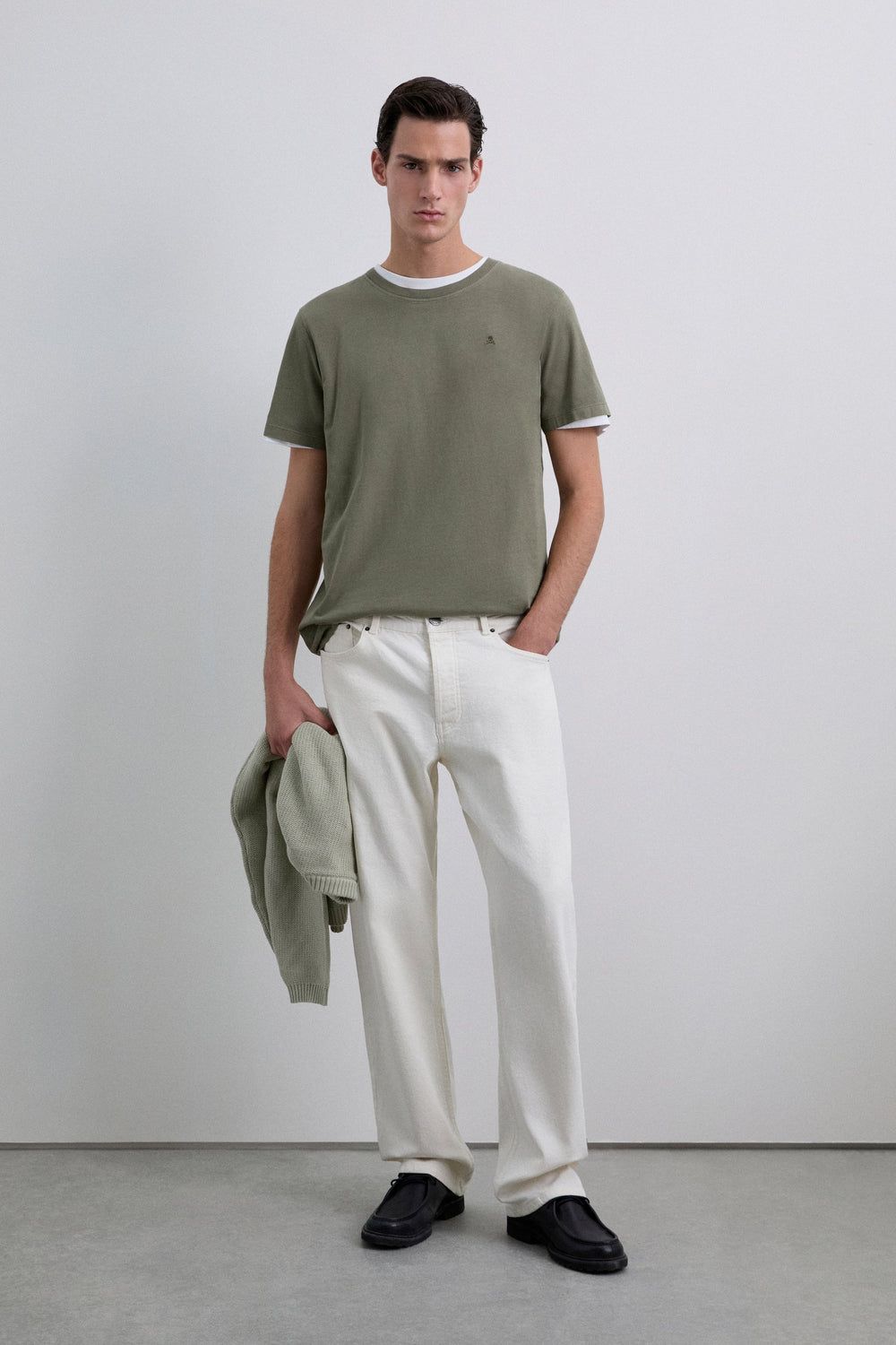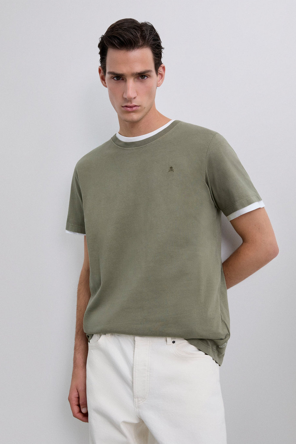 T-shirt confecionada em 100% algodão BCI. Regular fit, decote redondo e manga curta. Pormenor de skull bordada no tom.
