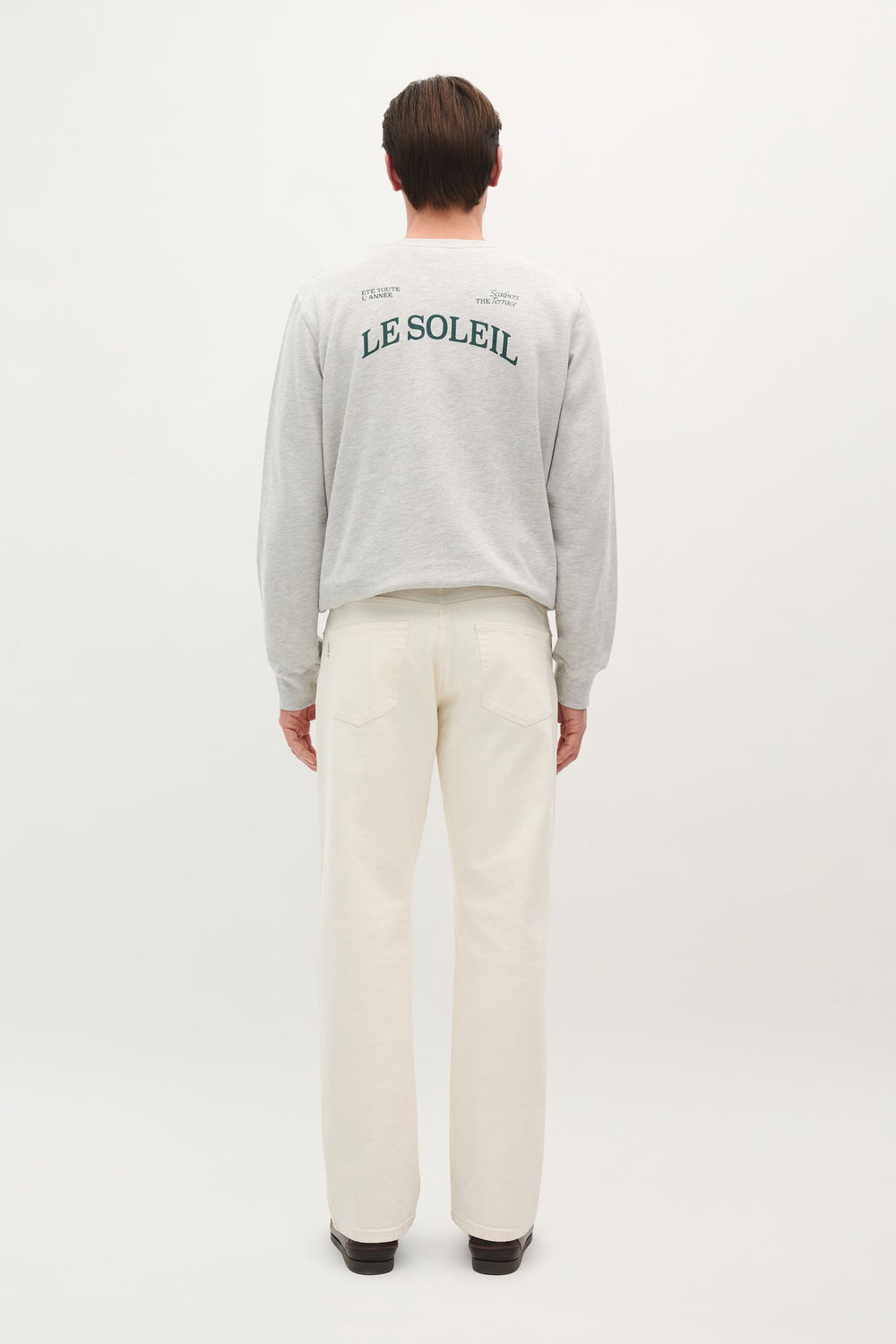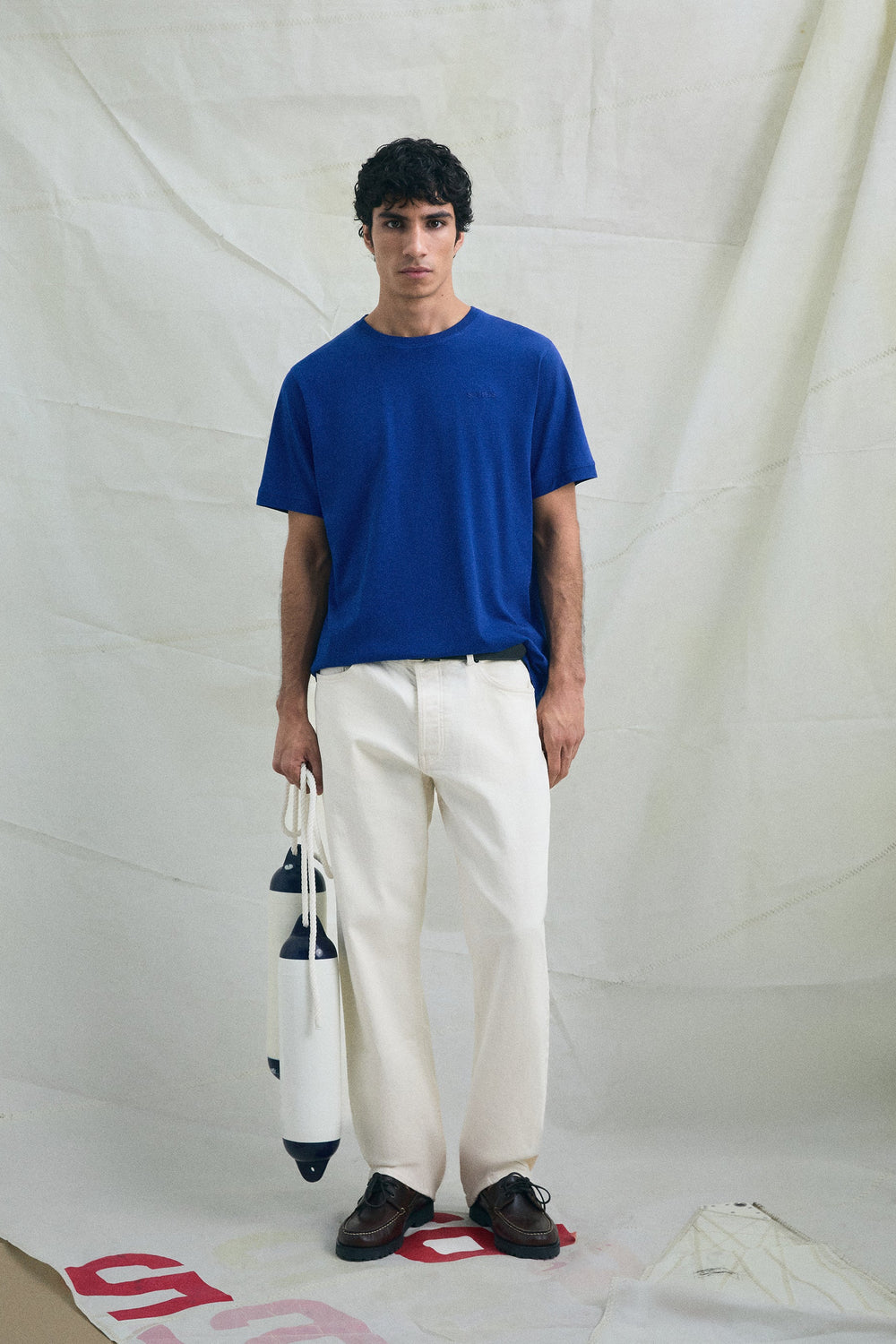 Calças jeans confecionadas em algodão BCI. Fecho com botão e zip. Dois bolsos laterais e traseiros. Presilhas na cintura.