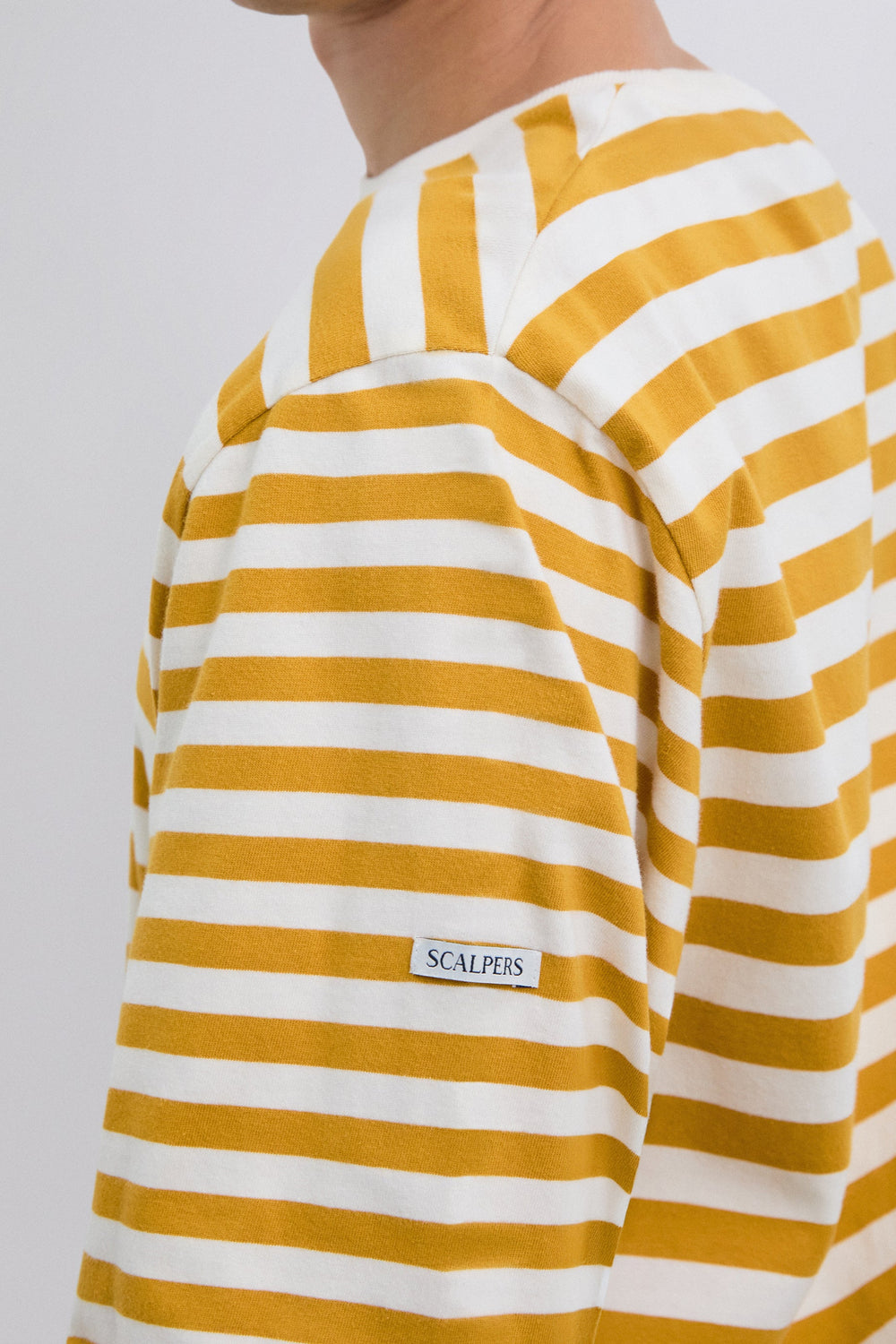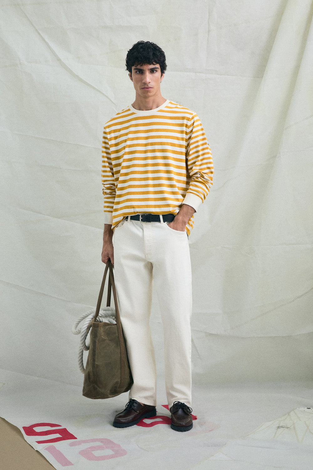 Camiseta con estampado de rayas. Confeccionada en 100% algodón BCI. Corte Regular Fit. Cuello redondo. Contraste en cuello y puños. Manga larga.