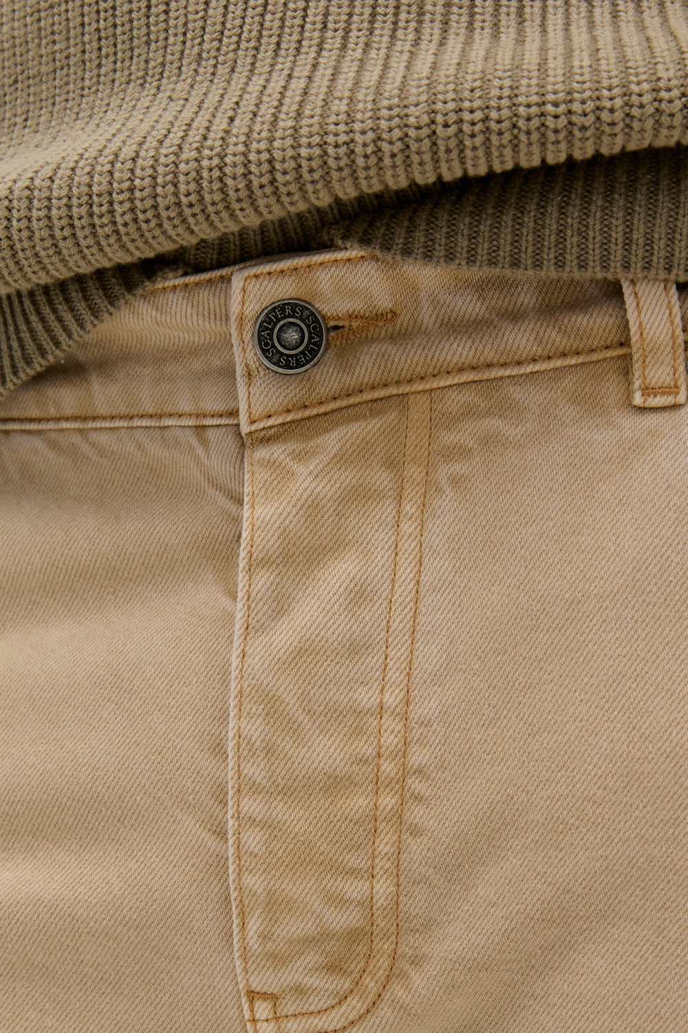Jeans confeccionados em mistura de algodão. Corte cropped, fecho com botão e fecho de correr, e bolsos laterais e traseiros. Passadores na cintura.