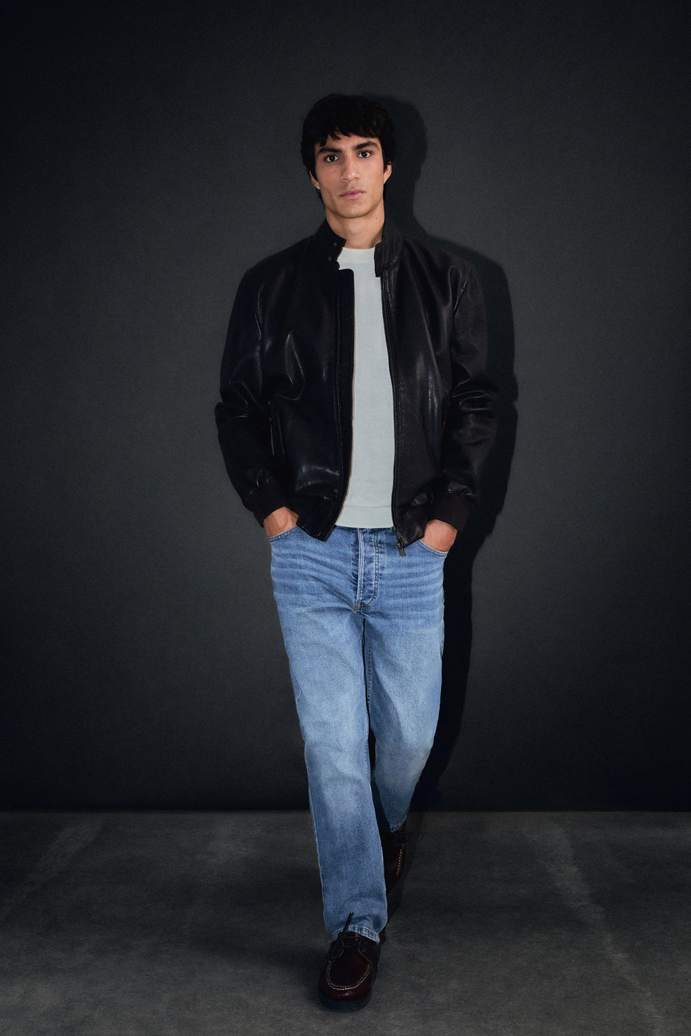 Jeans confecionados em algodão BCI ligeiramente elástico. Regular fit, fecho com botão e zip e bolsos laterais e atrás. Presilhas na cintura.
