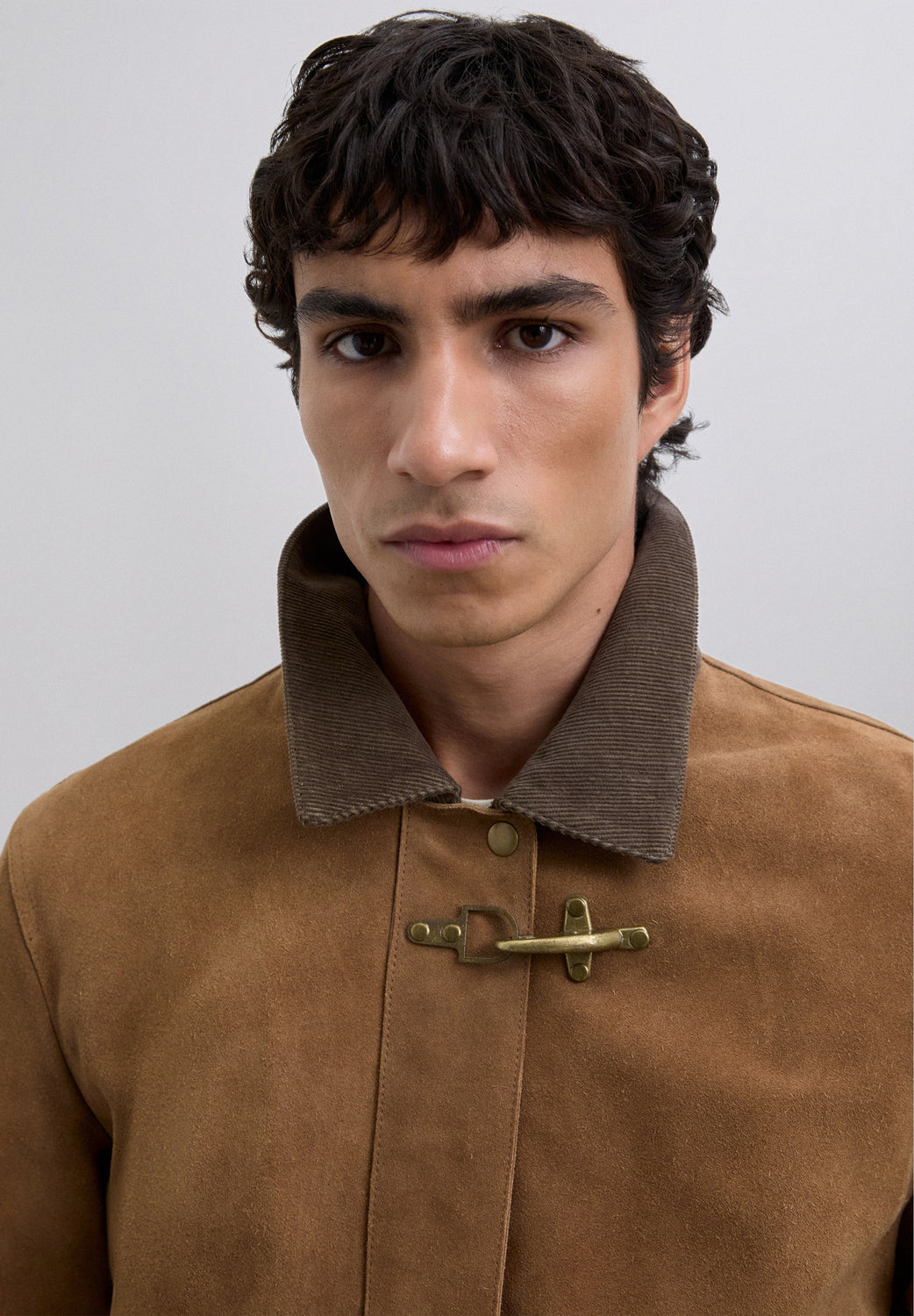 Casaco confecionado em 100% pele. Manga comprida. Gola de bombazina. Fecho frontal metálico tipo toggle e fecho de correr. Dois bolsos de remendo com botões.