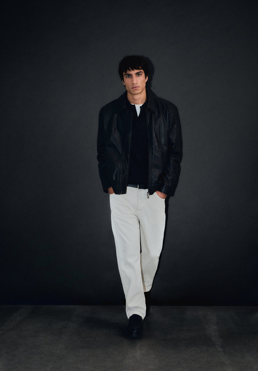Calças confecionadas em 100% algodão. Corte direito. Fecho com botão e zip. Bolsos laterais e atrás. Presilhas na cintura.
