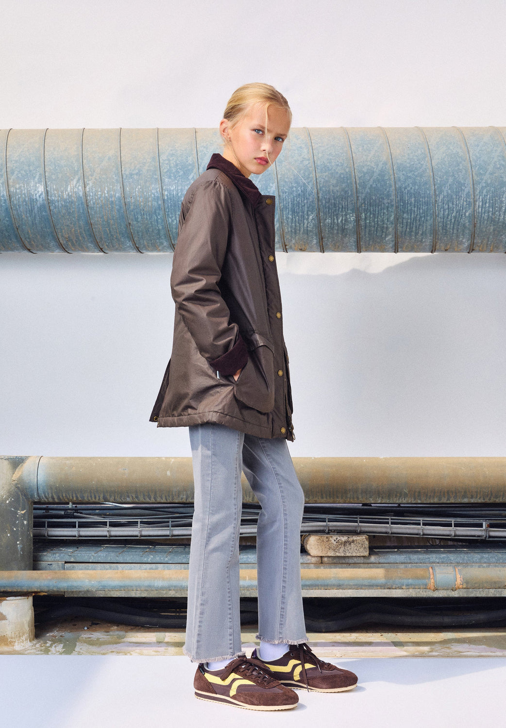 Sapatilhas confecionadas em pele de camurça. Fecho com cordões ajustáveis no tom. Logótipo em contraste. Sola TPR.