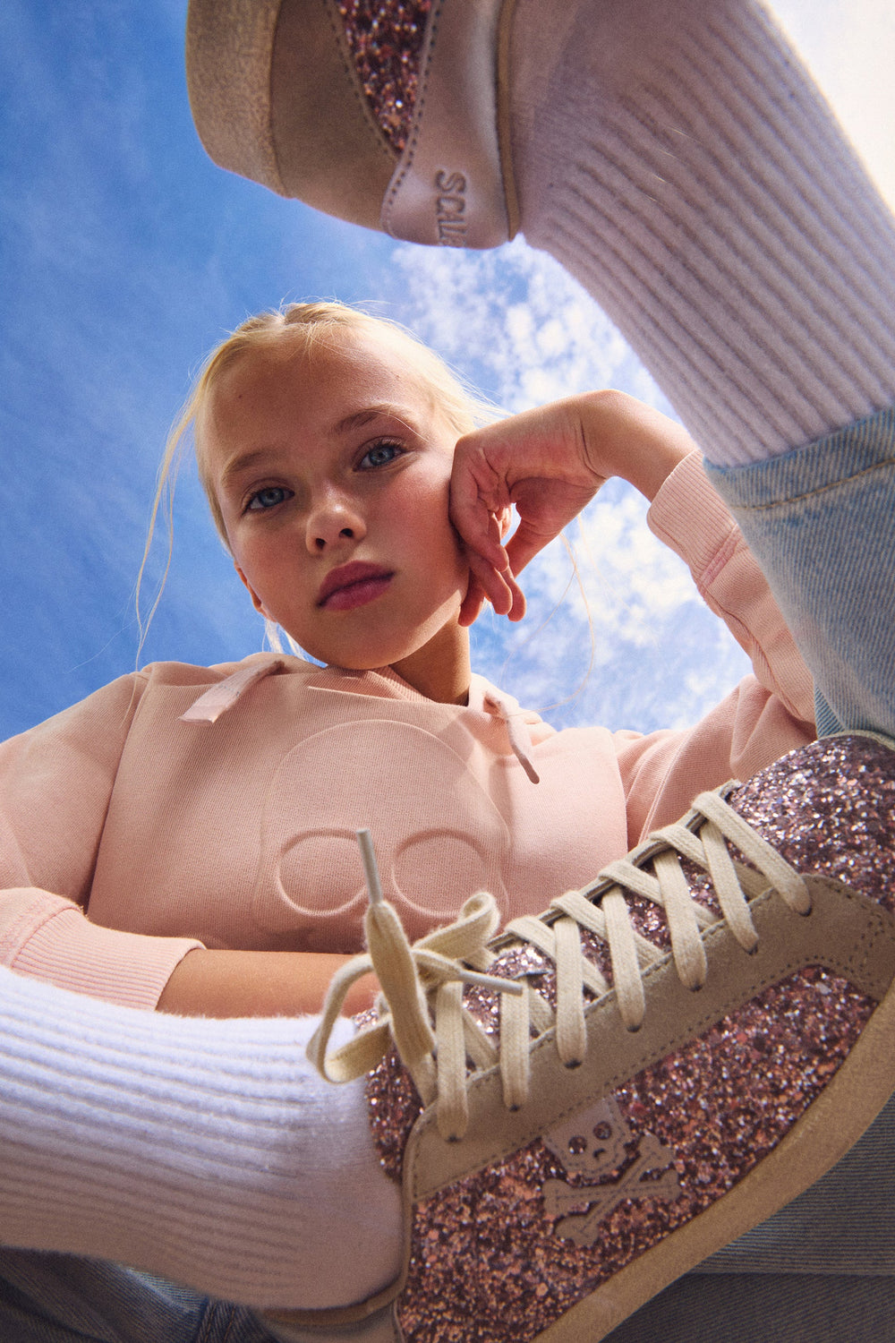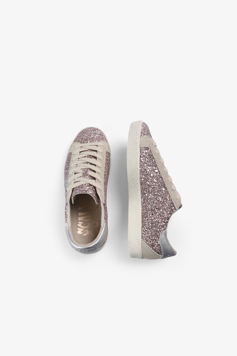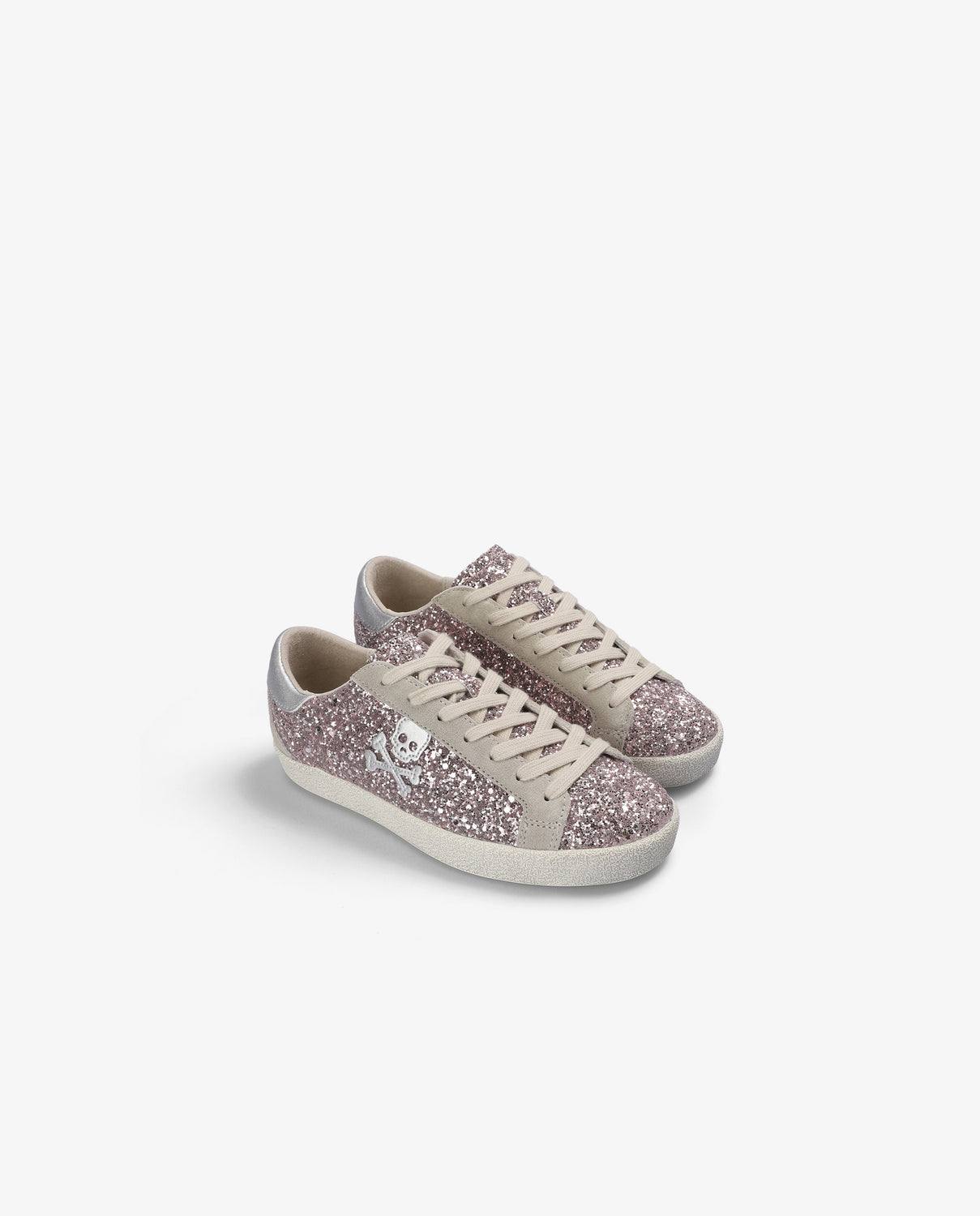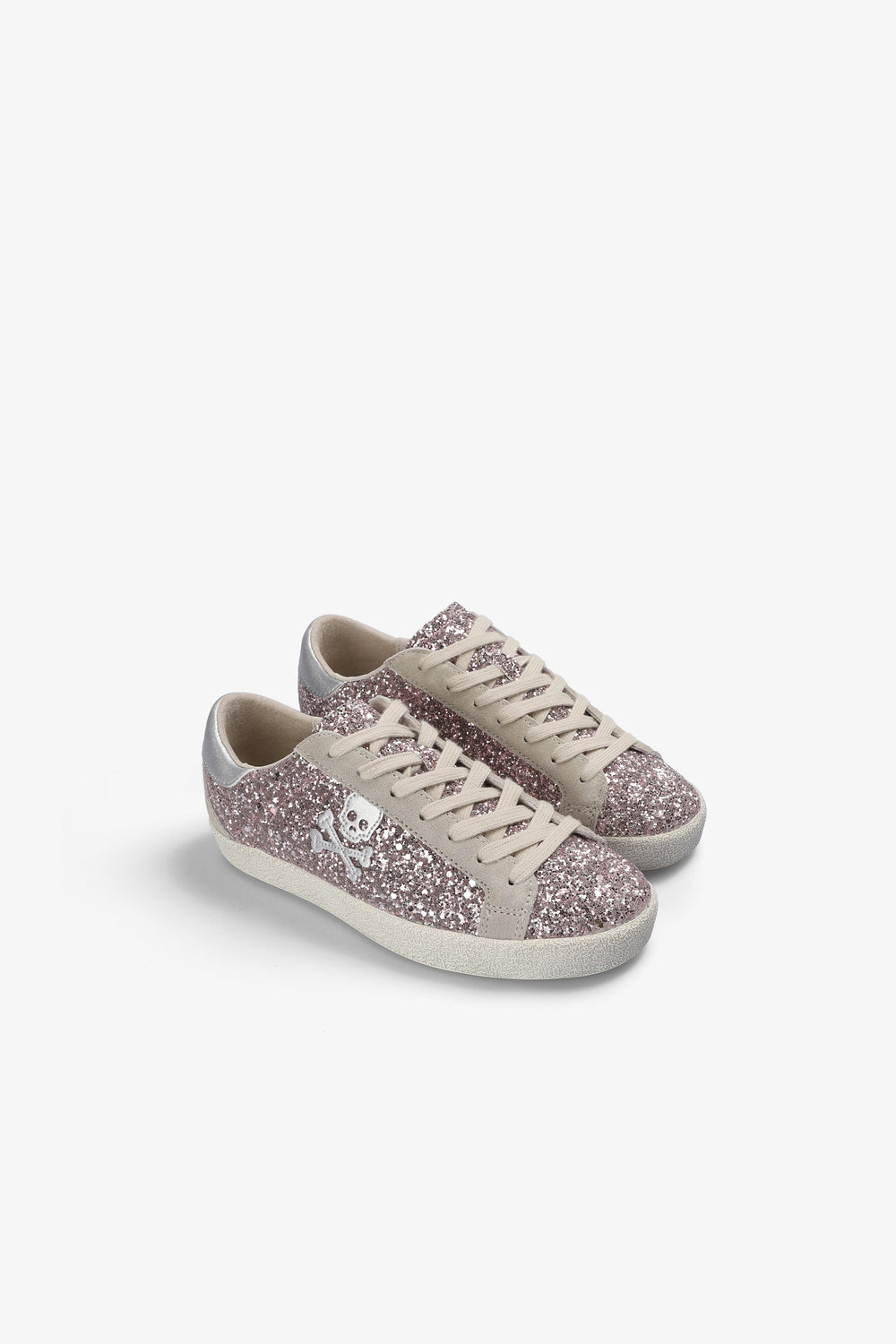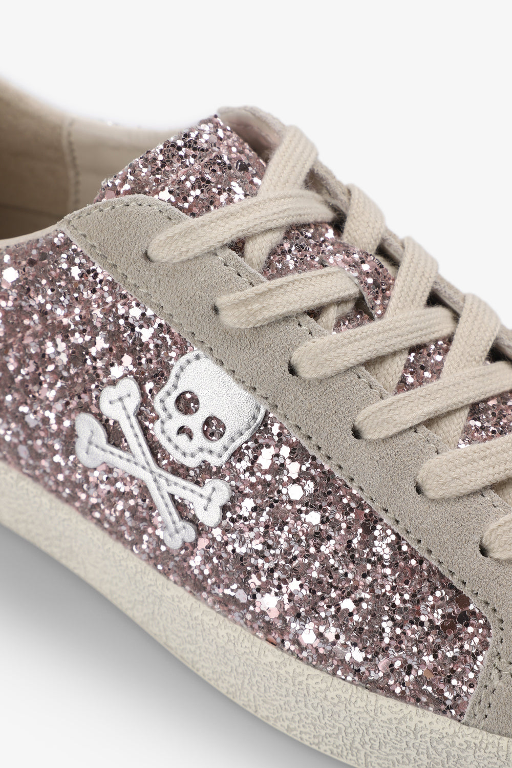 Sapatilhas de glitter. Fecho com cordões. Sola com efeito desgastado de caucho. Skull lateral em contraste. Calcanhar em contraste com logótipo no tom.