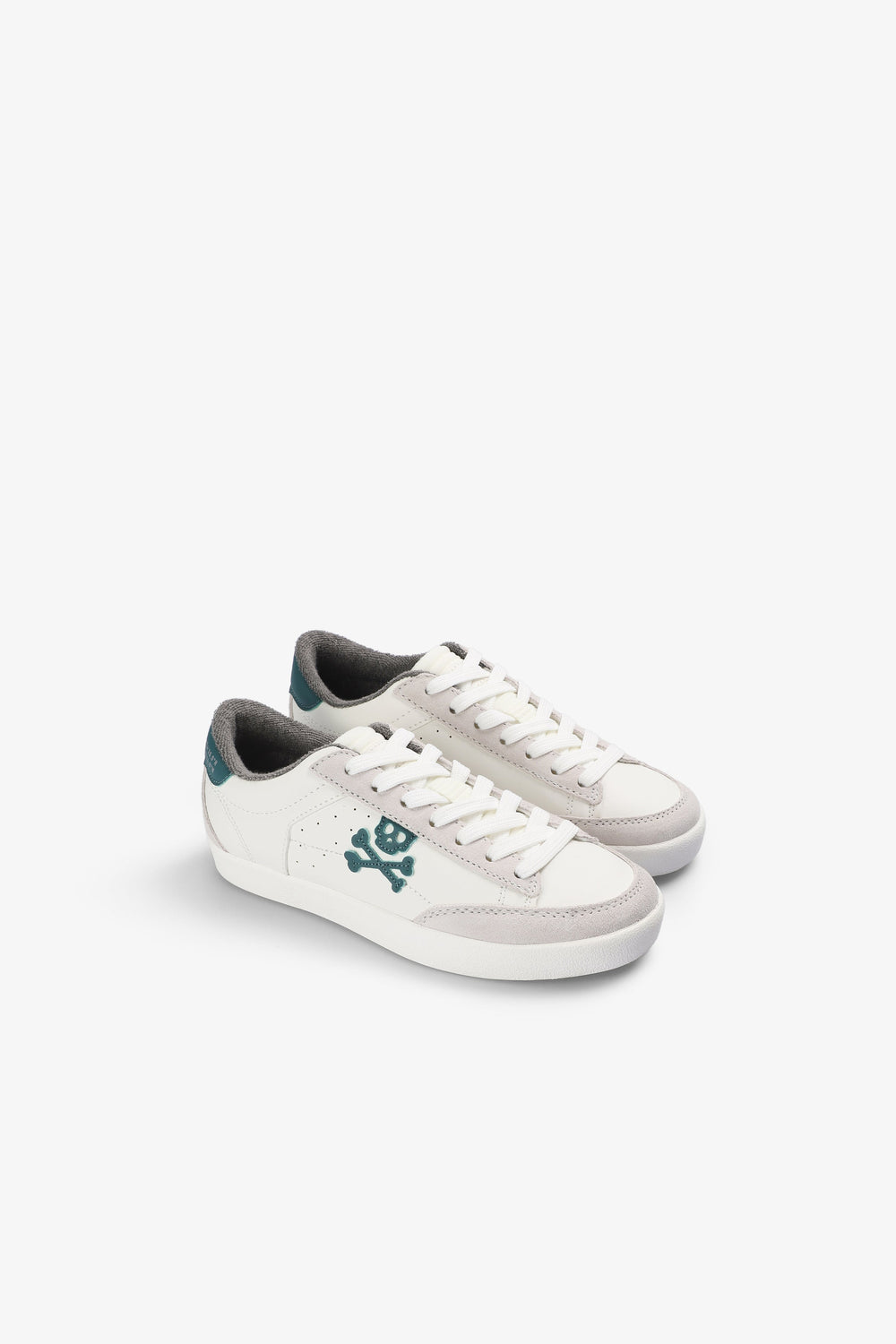 Sapatilhas baixas com skull lateral a contrastar Fecho com cordões. Sola com efeito desgastado de caucho. Pormenor no calcanhar em contraste.