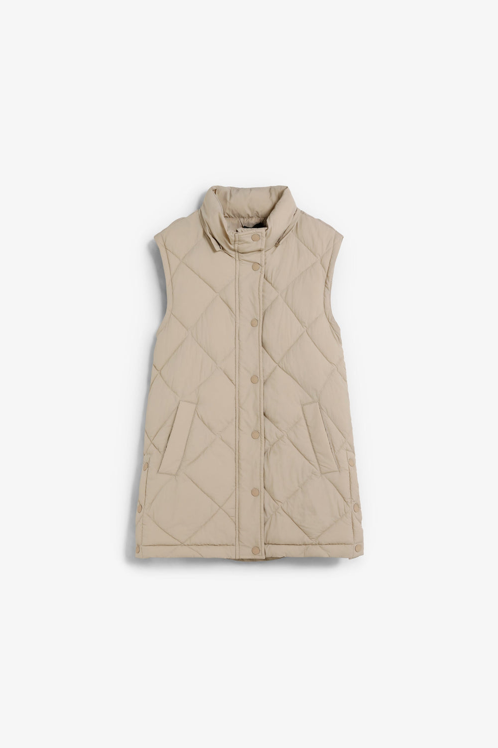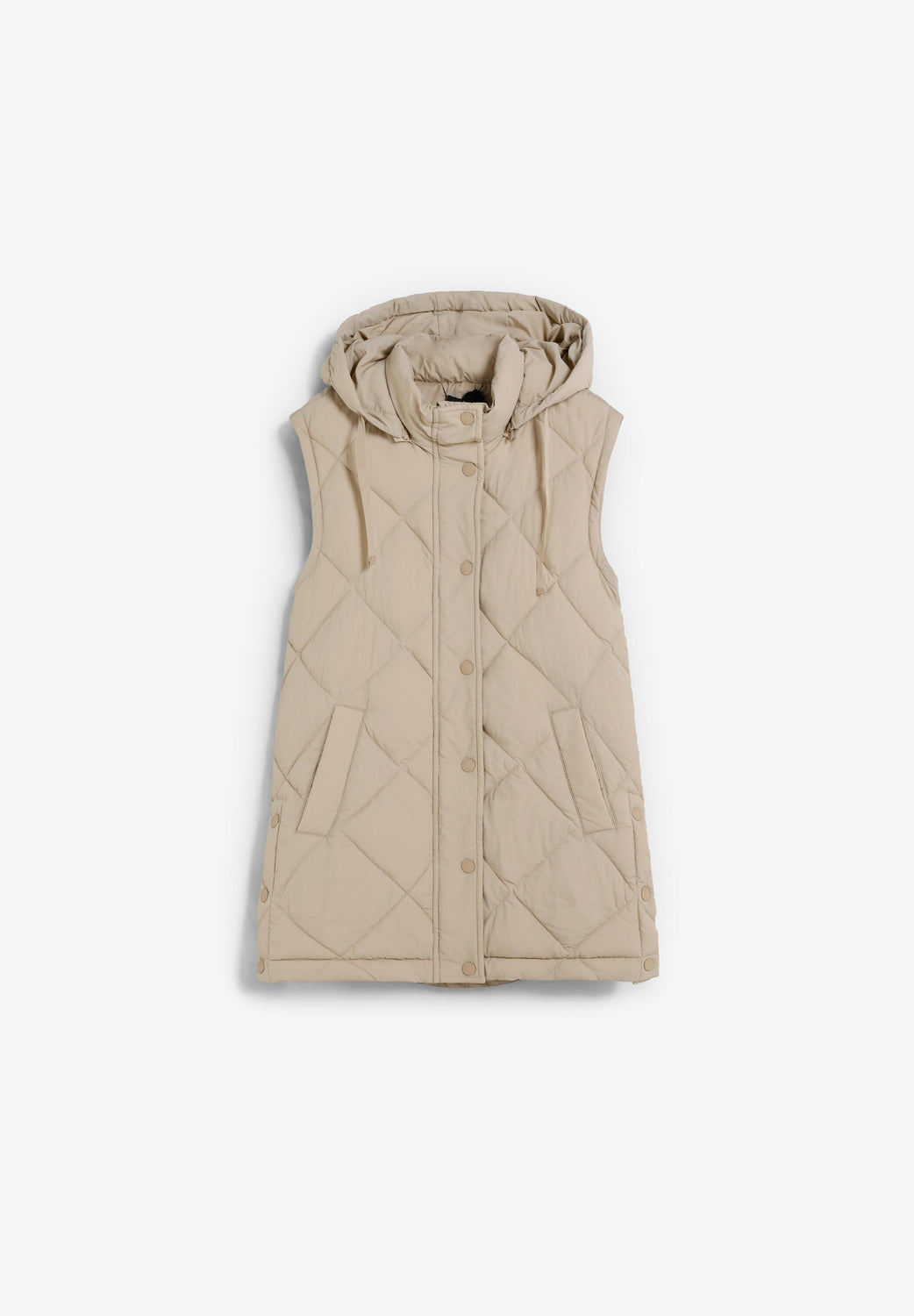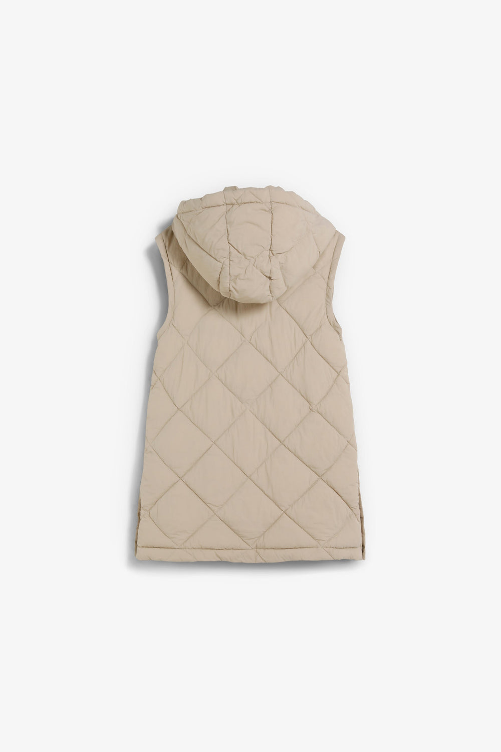 Casaco acolchoado. Capuz e Mangas amovíveis. Fecho de correr à frente oculto por uma aba com fecho de botões de pressão. Bolsos laterais. Forro recycled. Pormenor de logótipo nas costas.