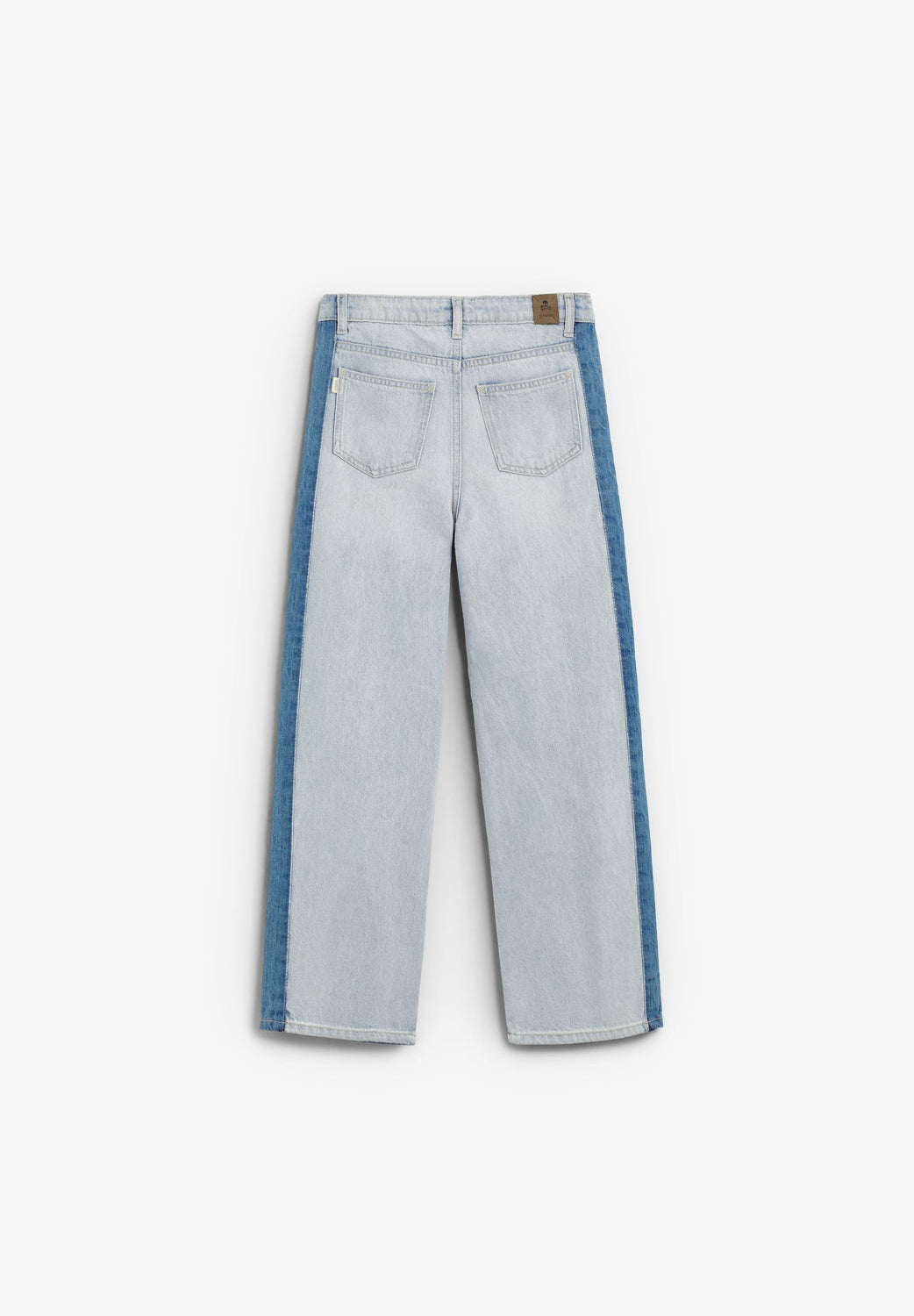 Calças wide leg confeconadas em 100% algodão BCI. Fecho com duplo botão e fecho de correr. Presilhas na cintura. Pormenor de costura em contraste na lateral. Forro interior 100% algodão.