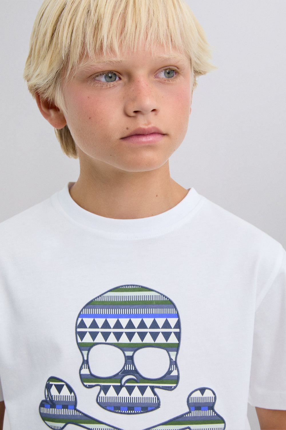 T-shirt com skull com padrão. Confecionada em 100% algodão BCI. Corte Regular Fit. Decote redondo. Manga curta.