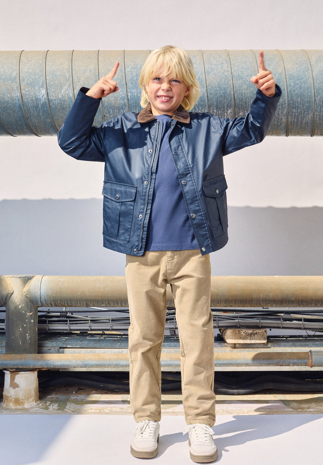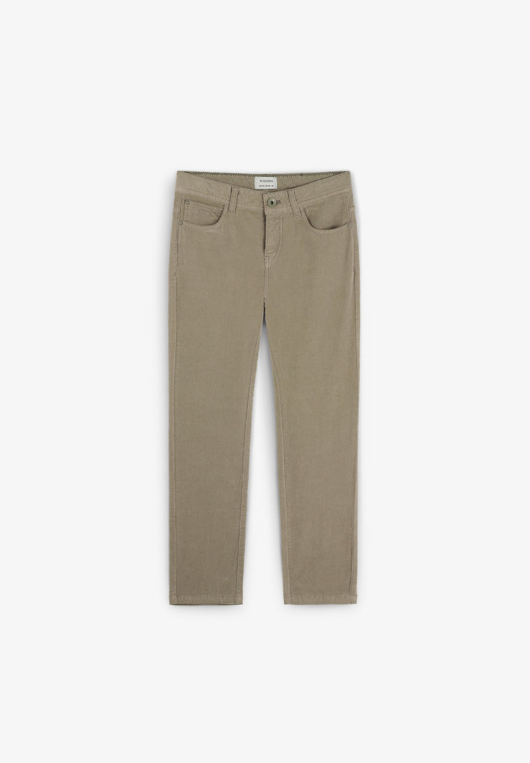 Calças cinco bolsos confecionadas em algodão BCI ligeiramente elástico. Regular fit. Fecho com botão e fecho de correr. Presilhas na cintura.