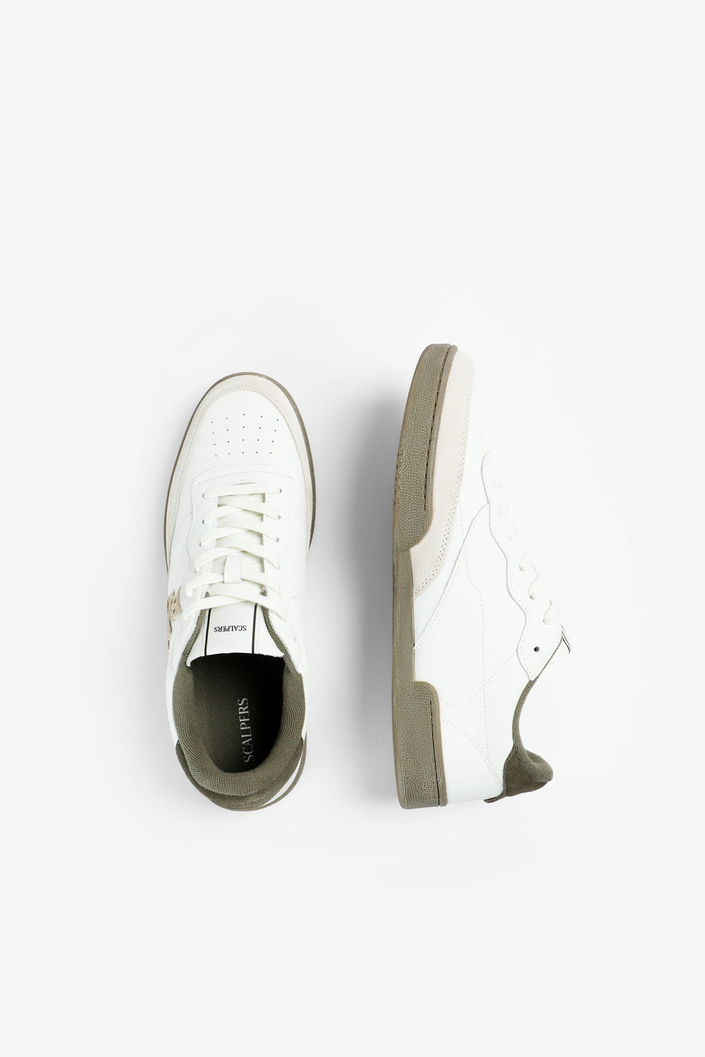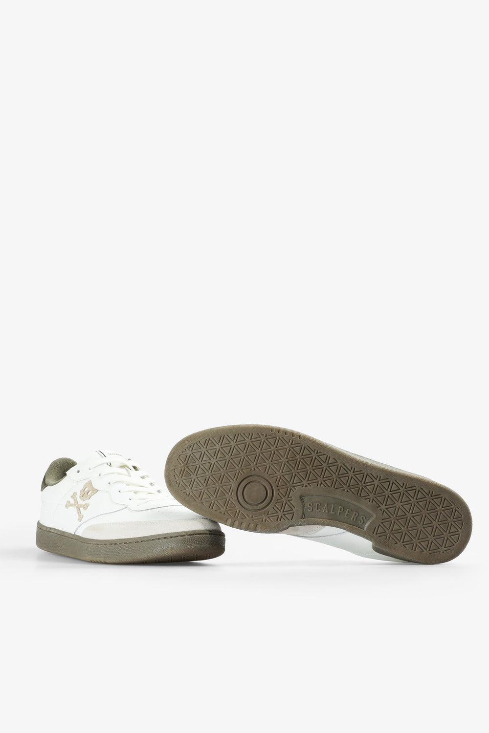 Sapatilhas com skull lateral em contraste confecionadas em pele. Fecho com cordões no tom. Sola de TPR em contraste. Pormenor em contraste no calcanhar e pormenor de logótipo no tom. Etiqueta com logótipo na língua.
