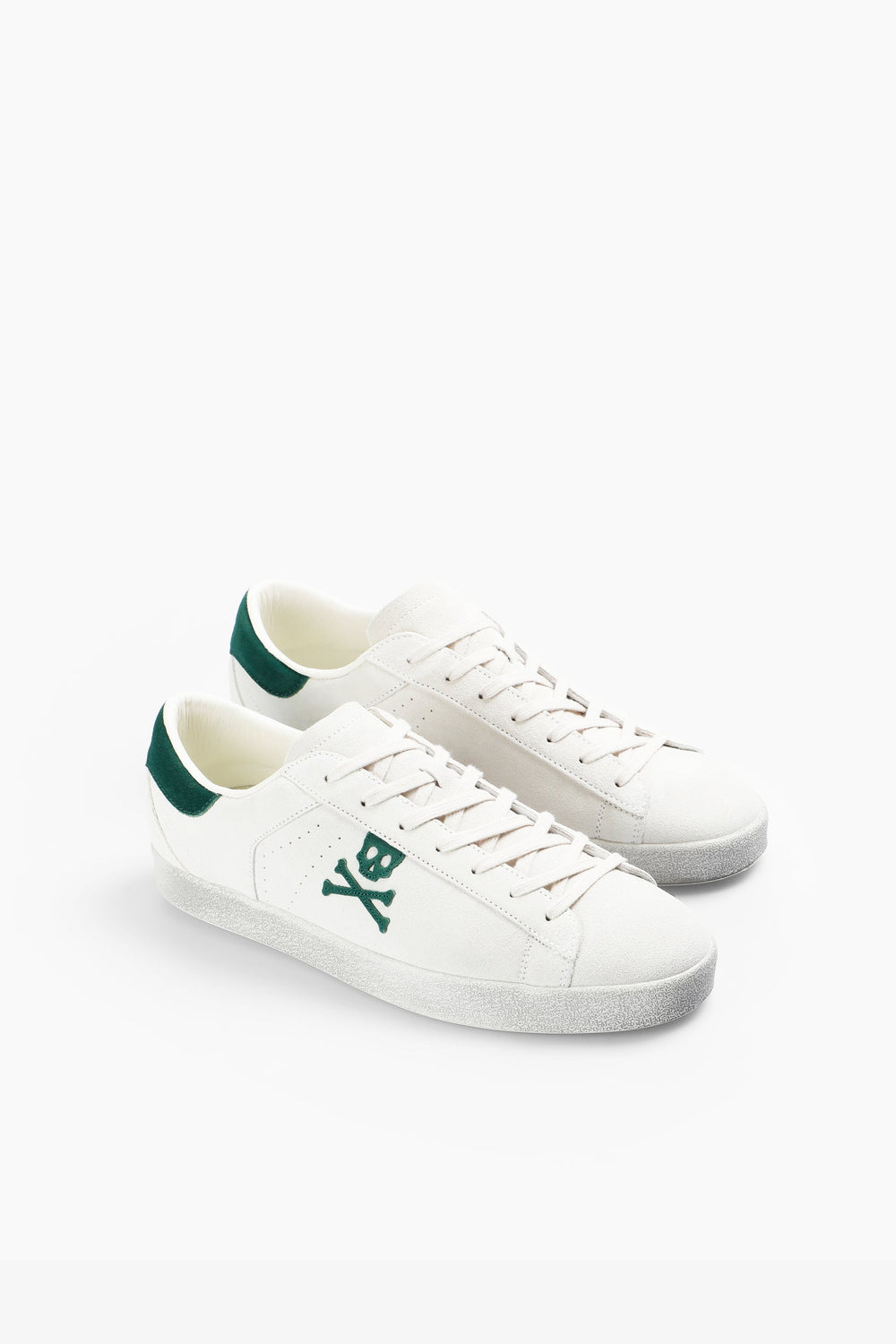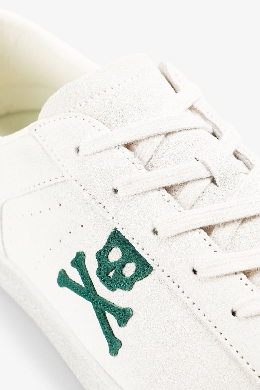 Sapatilhas com skull lateral em contraste confecionadas em camurça. Fecho com cordões no tom. Sola de borracha. Pormenor em contraste no calcanhar e pormenor de logótipo no tom.