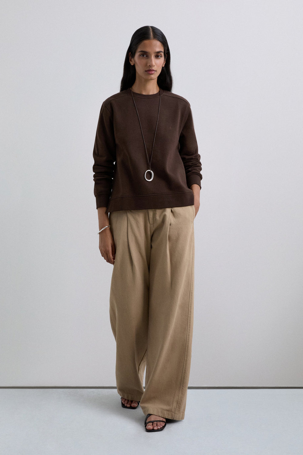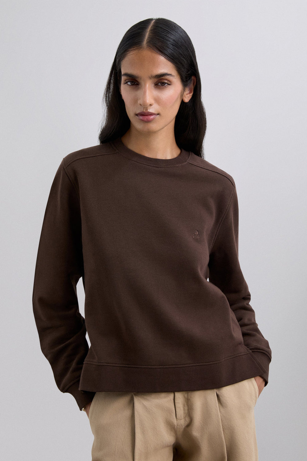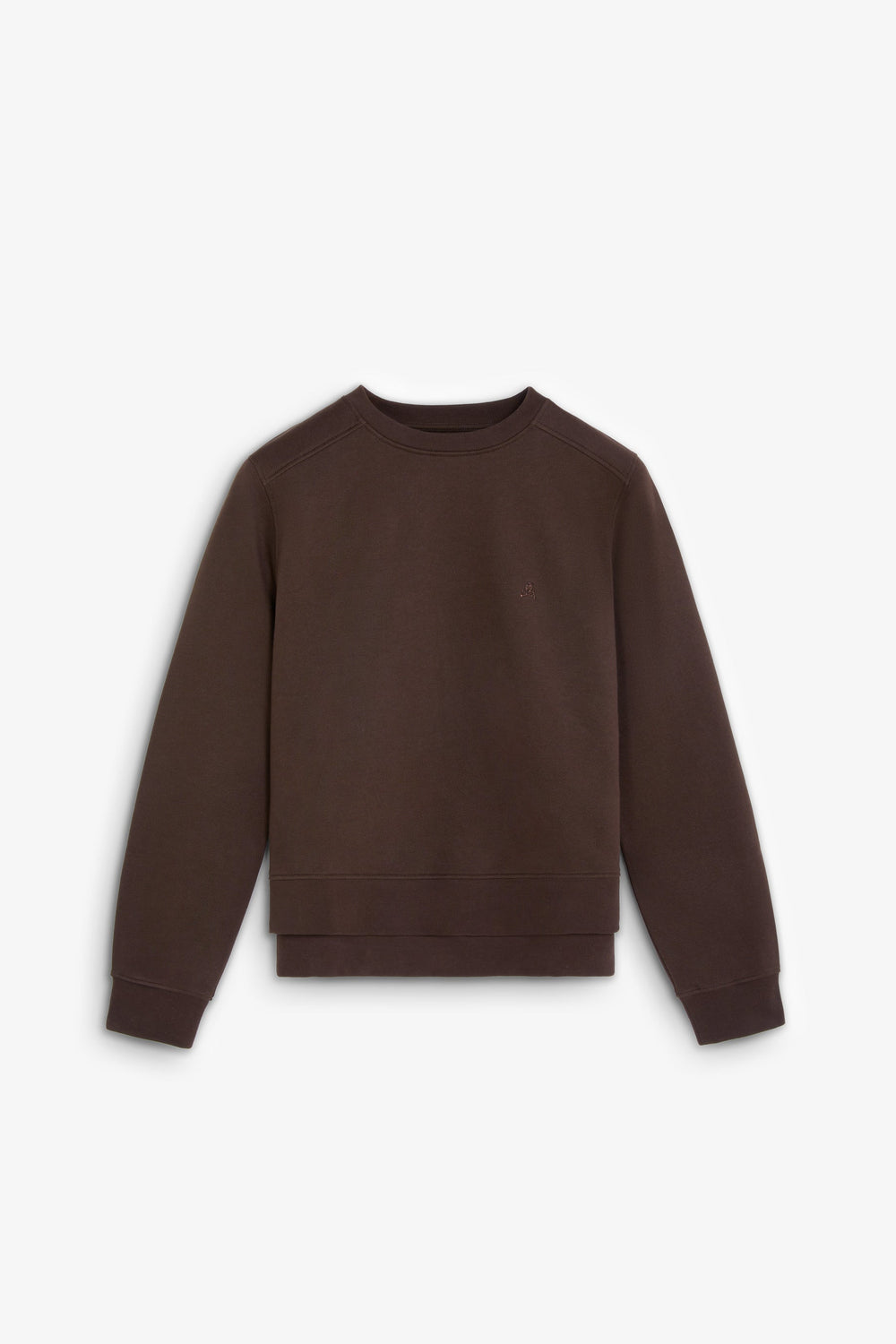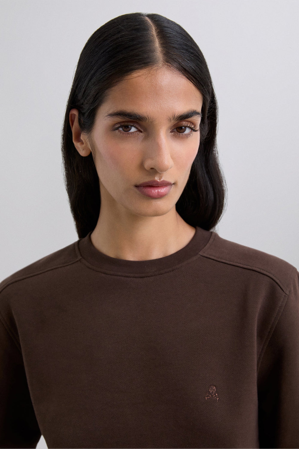Sweatshirt confecionada em 100% algodão BCI. Corte regular fit, decote redondo e manga comprida com punhos terminados em nervuras. Bainha assimétrica, parte traseira alongada. Pormenor de skull bordada no peito.