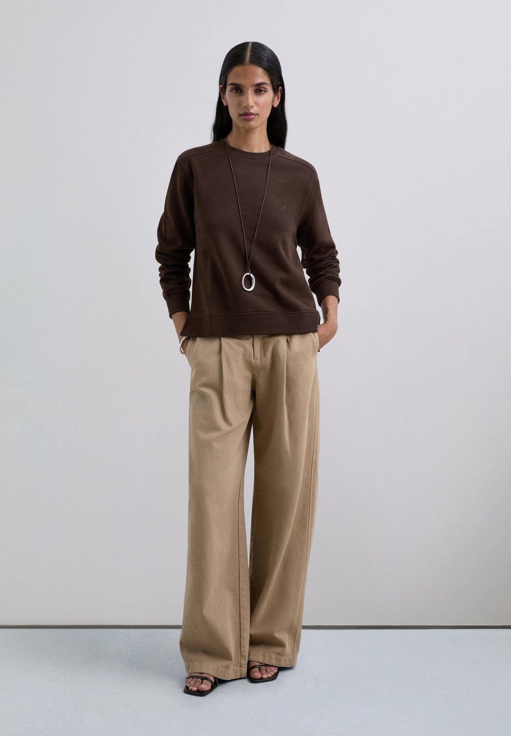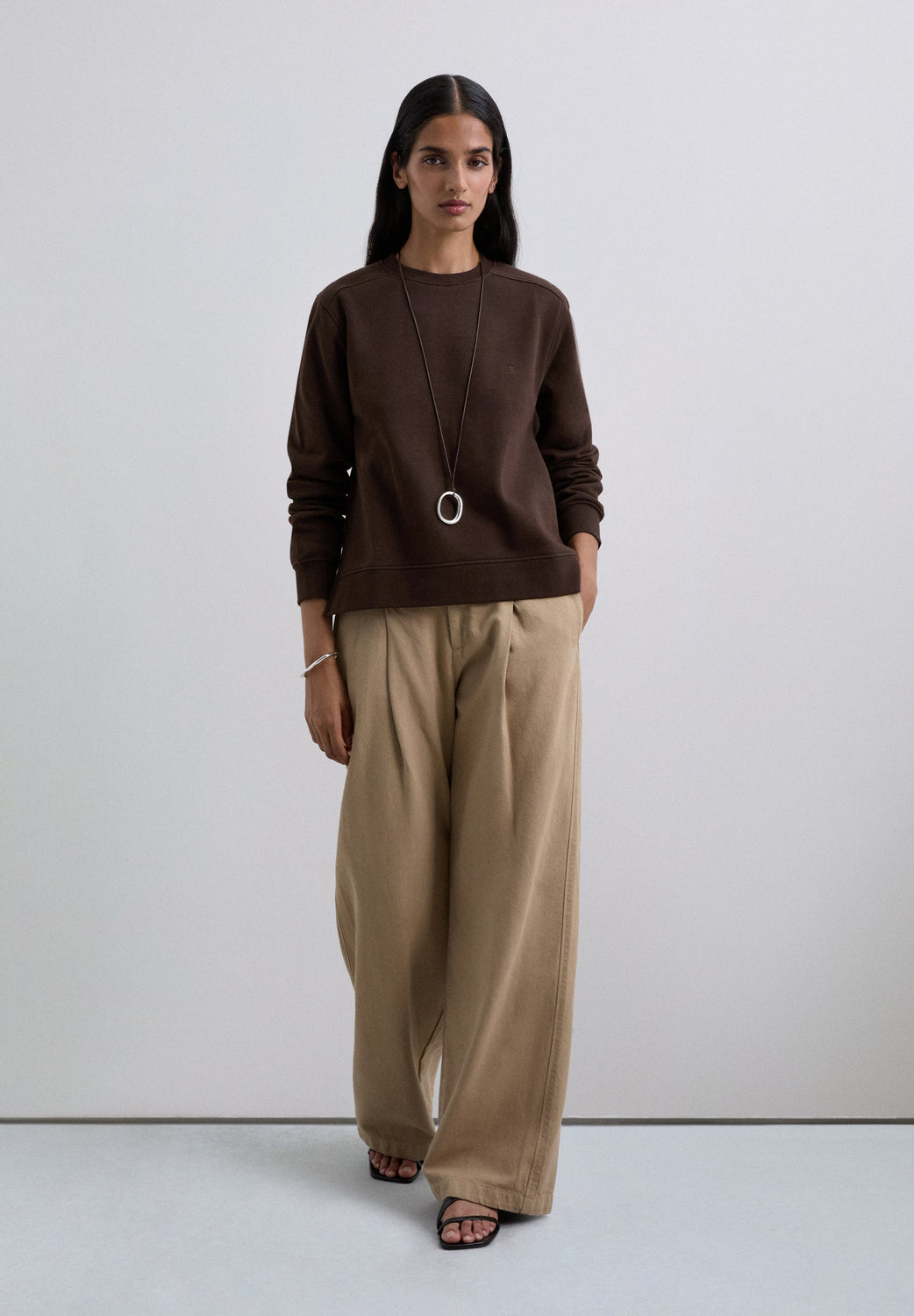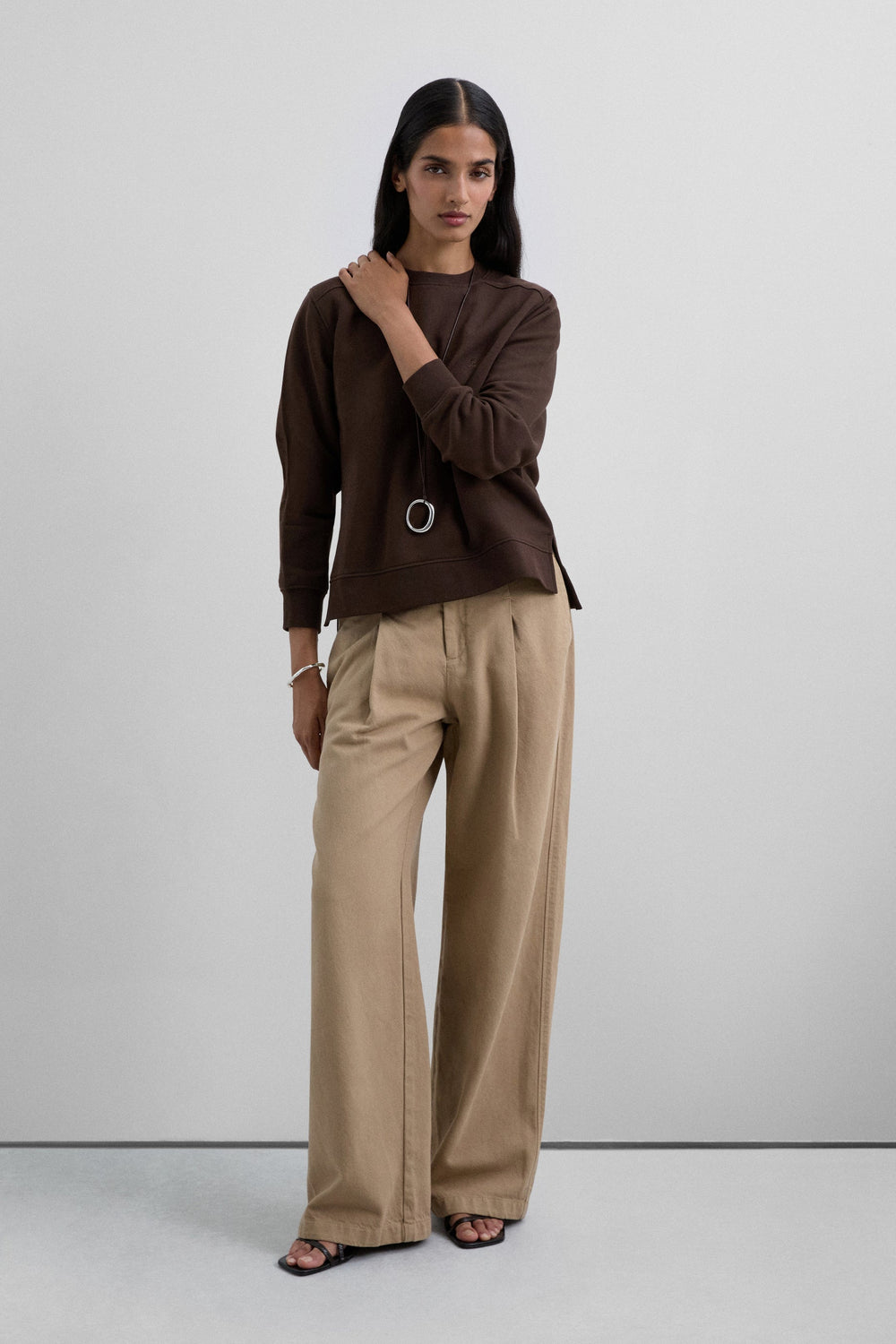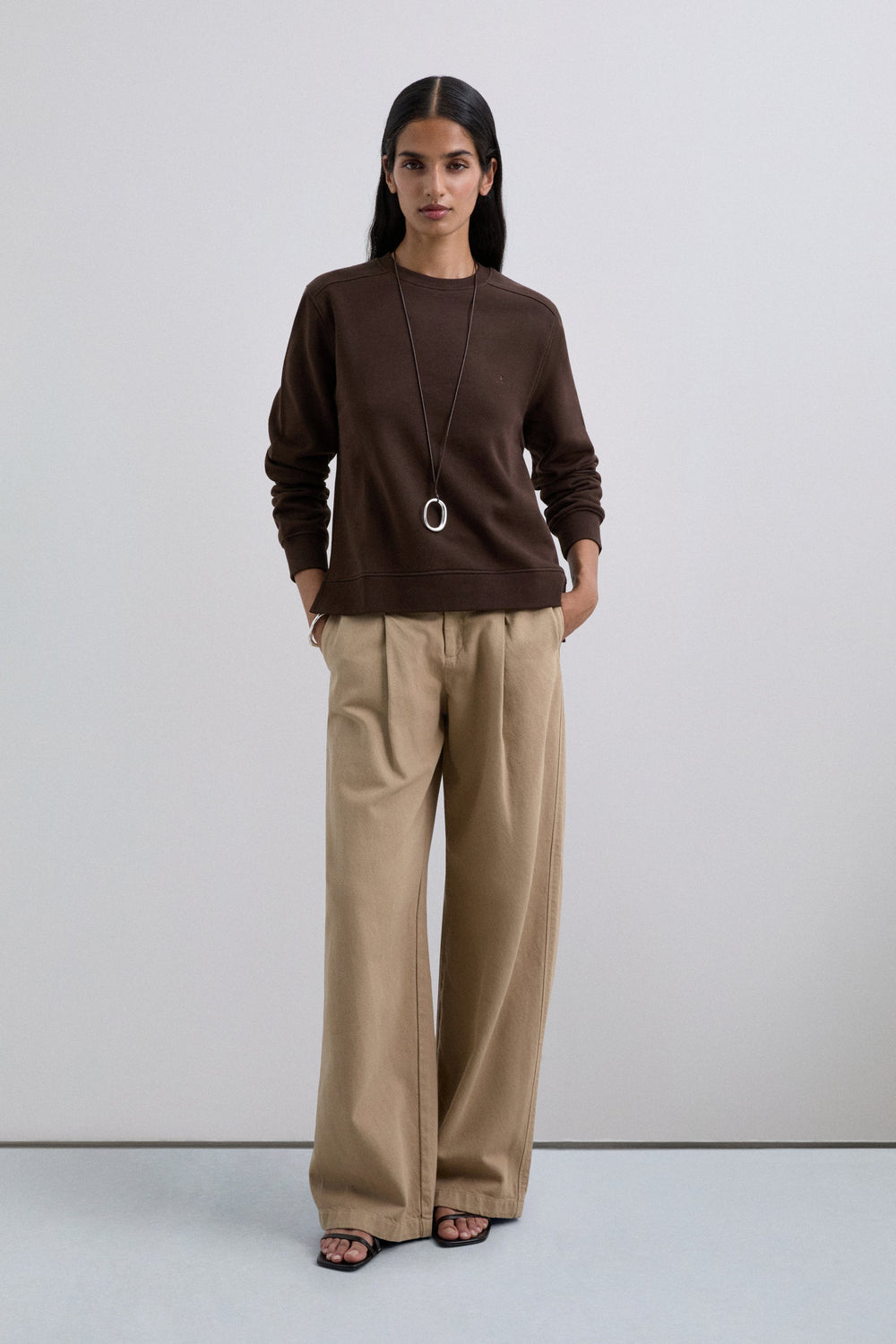 Sweatshirt confecionada em 100% algodão BCI. Corte regular fit, decote redondo e manga comprida com punhos terminados em nervuras. Bainha assimétrica, parte traseira alongada. Pormenor de skull bordada no peito.