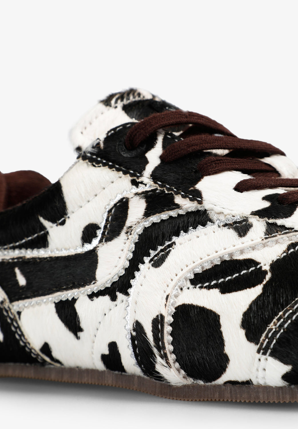 Sapatilhas confecionadas em mistura de pele de bovino. Sola de caucho resistente e design versátil. Calcanhar em contraste gravado com skull. Designs em contraste.