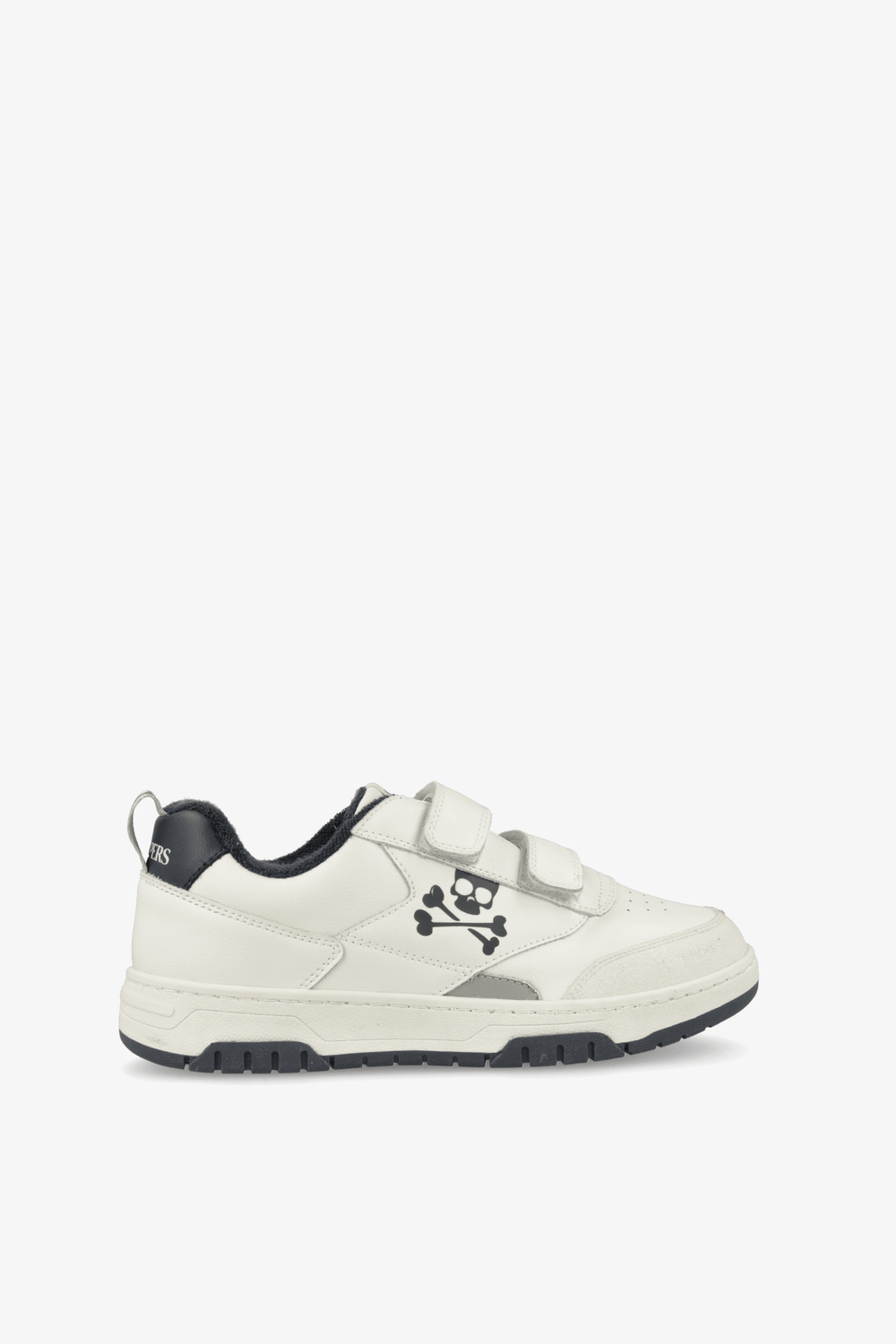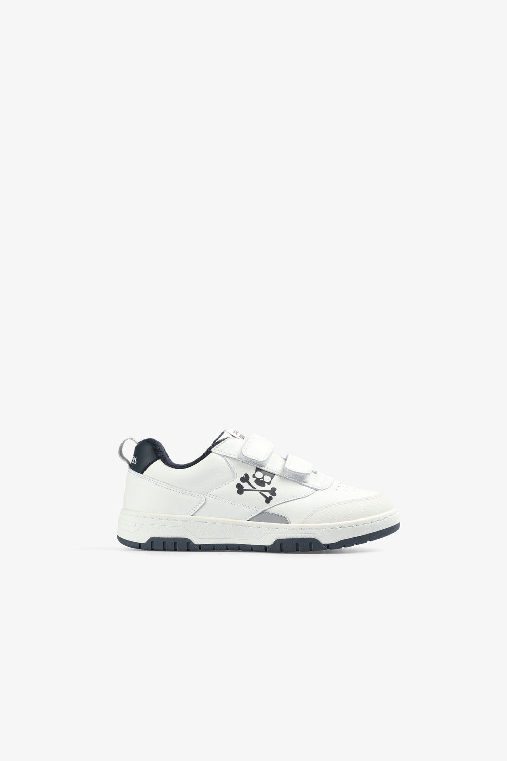 Sneakers confeccionadas en piel. Cierre con velcros, suela de goma y calavera lateral.