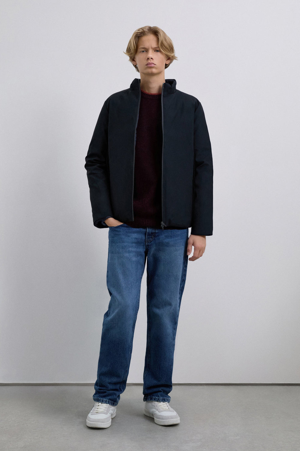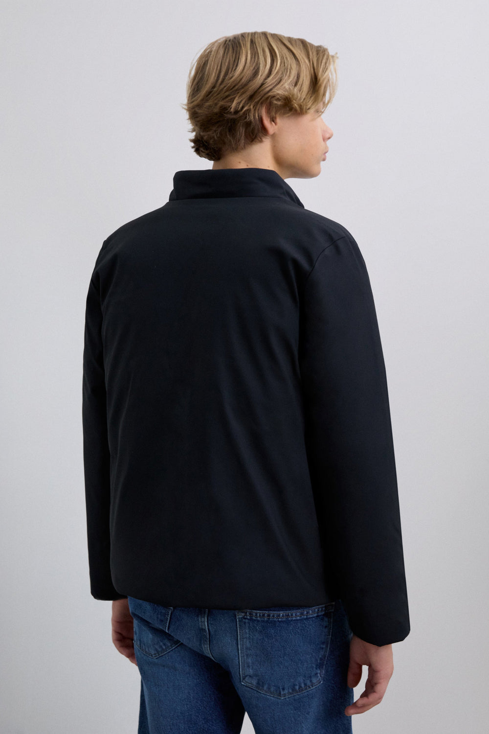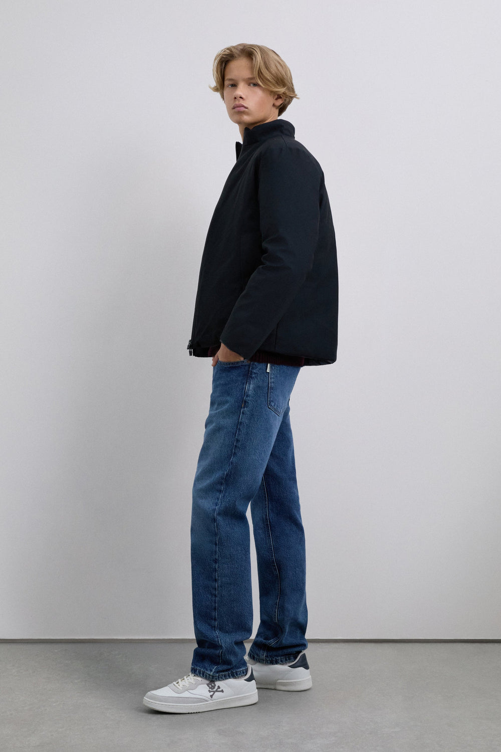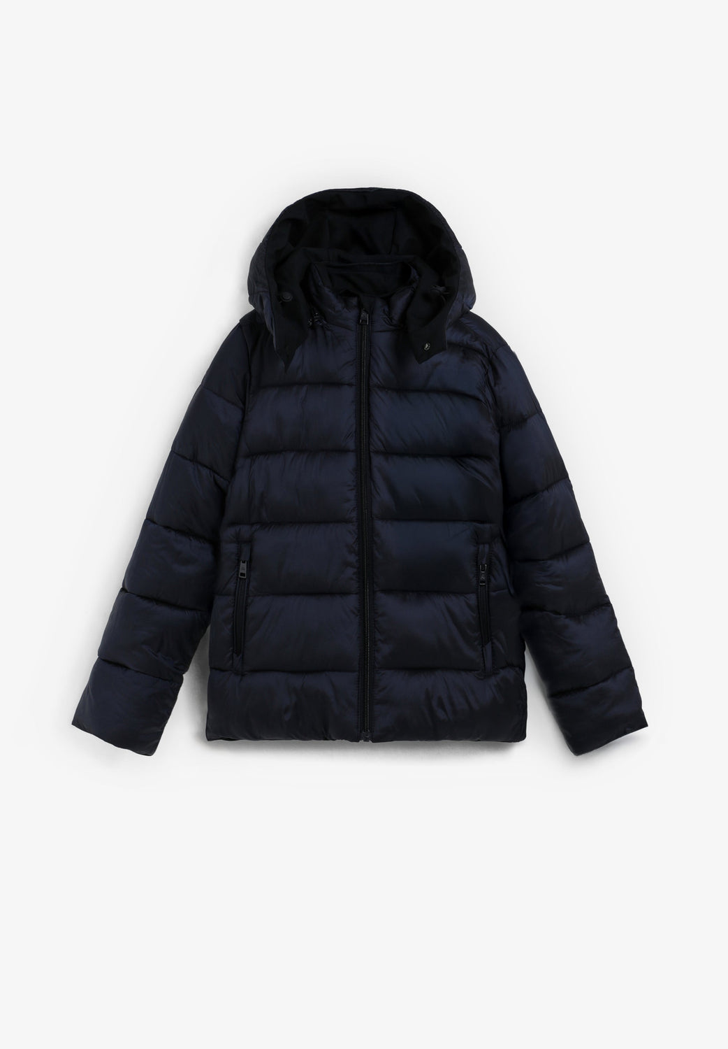 Cardigan com capuz extraível com fecho de botão. Manga comprida. Fecho zip duplo termosselado. Dois bolsos à frente. Pormenor de remendo efeito de caucho com logótipo e skull na manga.