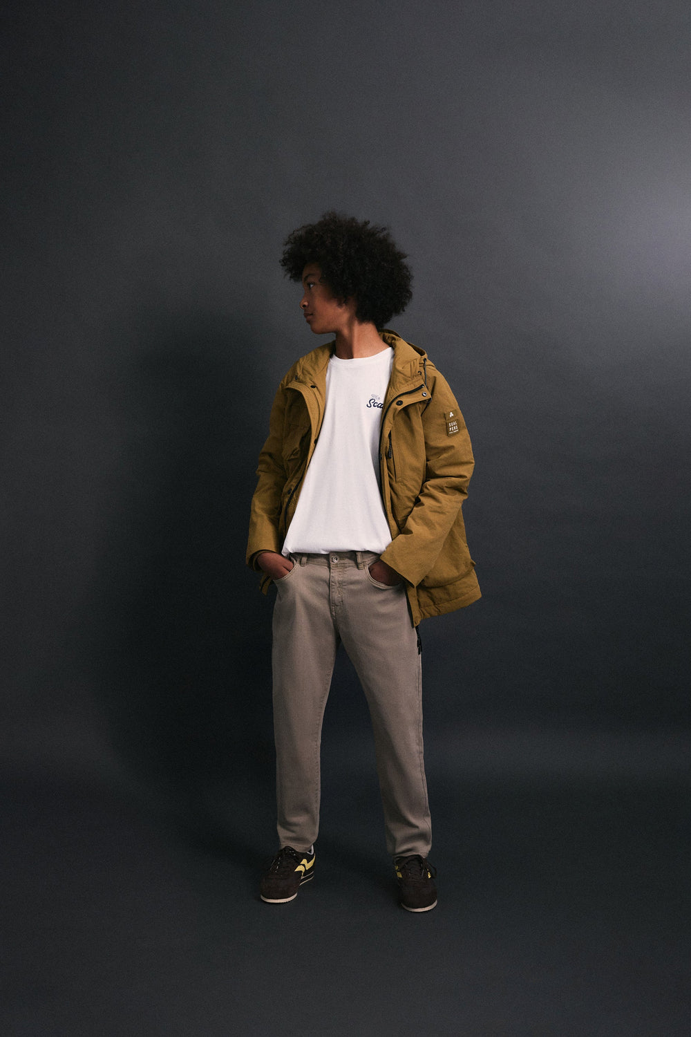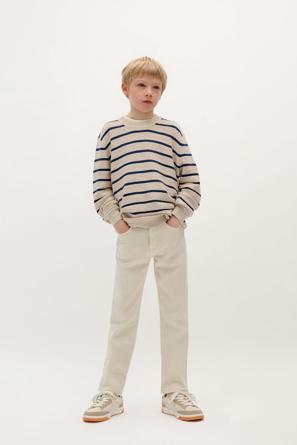 Pantalón confeccionado en algodón ligeramente elástico. Regular fit, cierre con botón y cremallera y bolsillos laterales y traseros. Trabillas en cintura y bordado de logo.