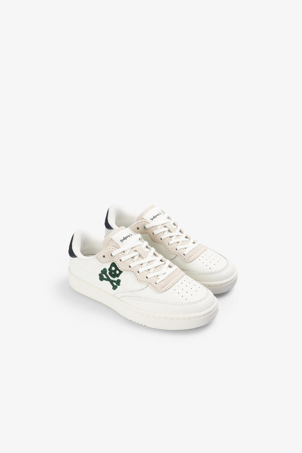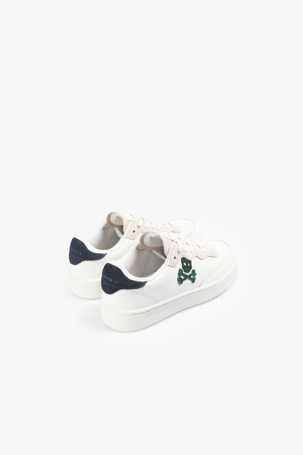 Sapatilhas com skull lateral em contraste confecionadas em 100% pele. Fecho com cordões. Sola de TPR. Pormenor de contraste no calcanhar e pormenor de logótipo de etiqueta na língua.
