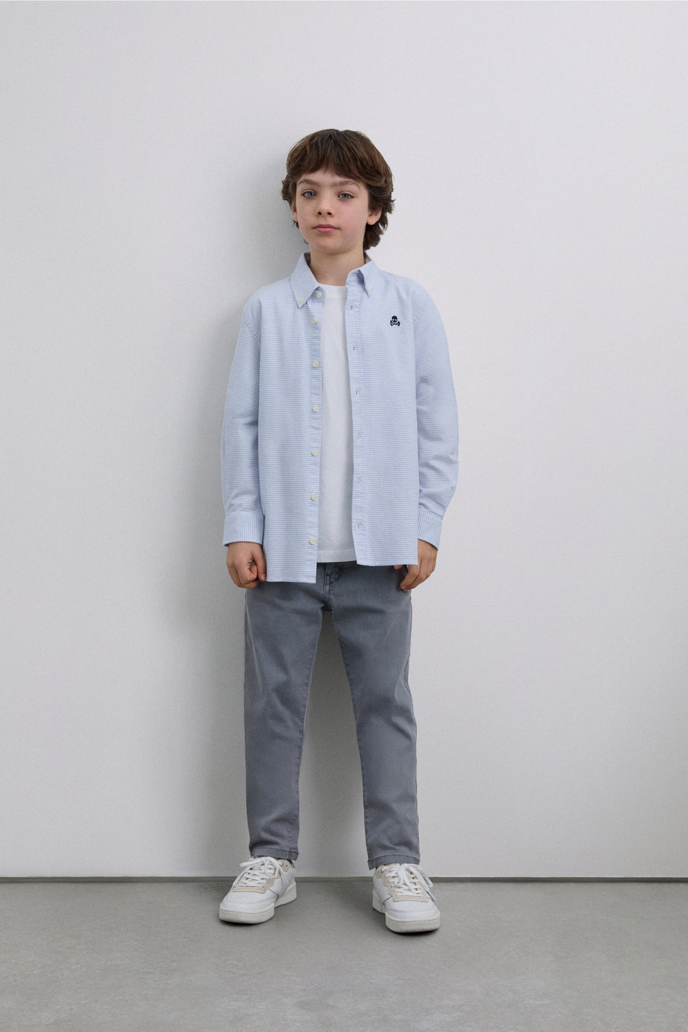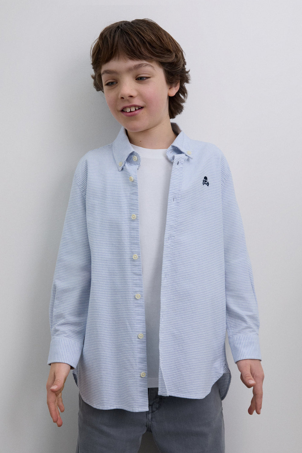 Camisa Oxford confecionada em 100% algodão BCI. Regular Fit. Colarinho clássico e fecho com botões. Manga comprida com punhos terminados com botão. Skull bordada no peito em contraste.