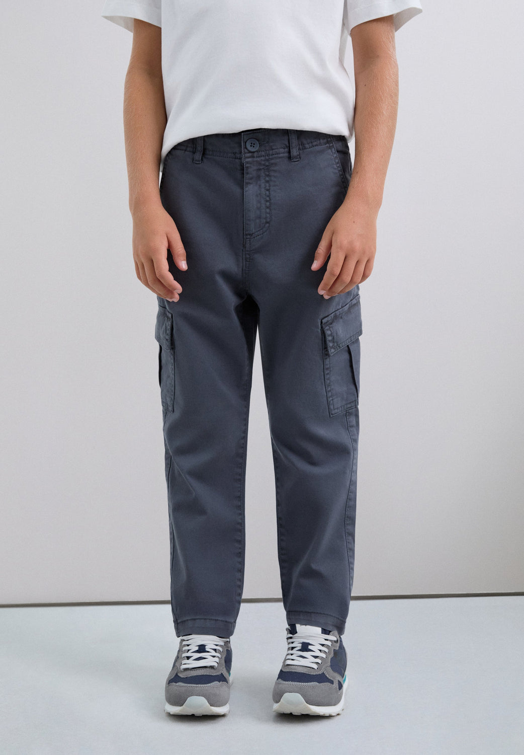Pantalón cargo confeccionado en algodón BCI ligeramente elástico. Regular fit, cierre con botón y cremallera y bolsillos laterales. Trabillas en cintura y bolsillos en pernera con tapeta.