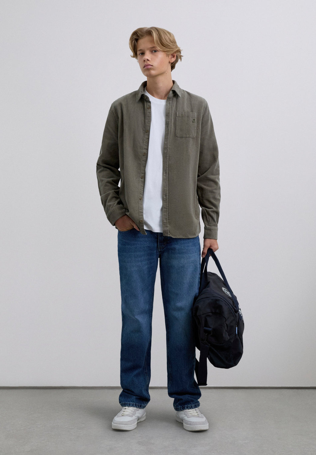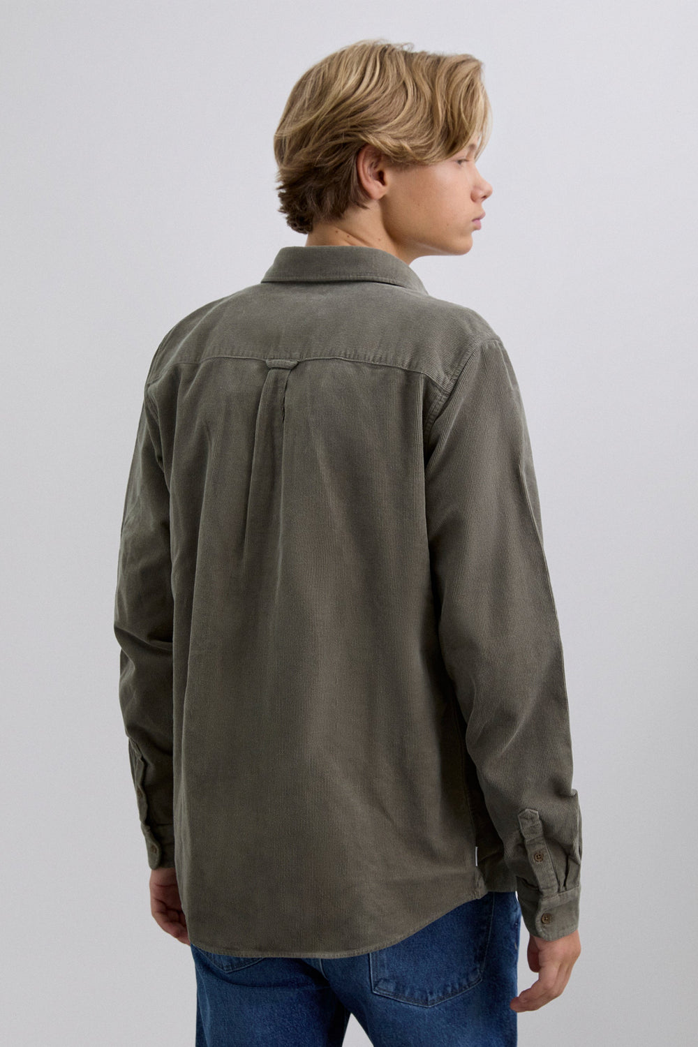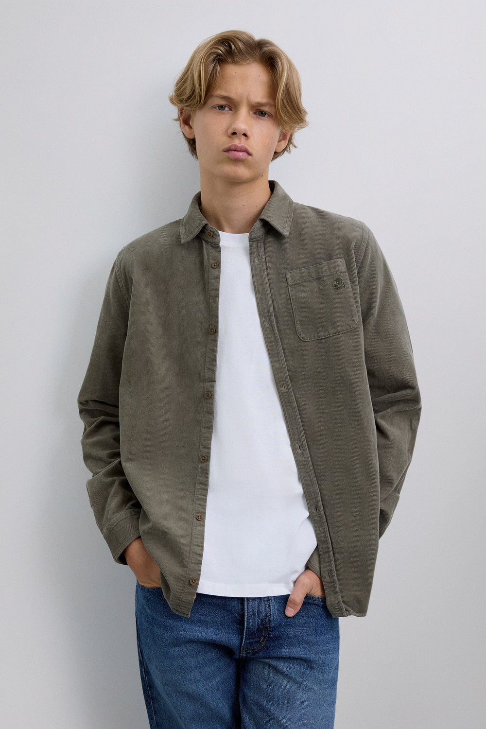 Camisa de bombazina confecionada em 100% algodão BCI. Regular fit. Fecho com botões. Manga comprida com punhos terminados com botão. Skull bordada no peito no tom.