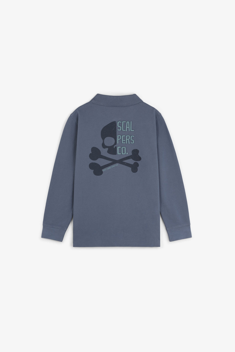 Camisa polo confecionada em 100% algodão BCI. Regular fit. Manga comprida. Colarinho clássico com botões. Logótipo bordado atrás e padrão com skull. Pormenor de remendo bordado frontal interior.