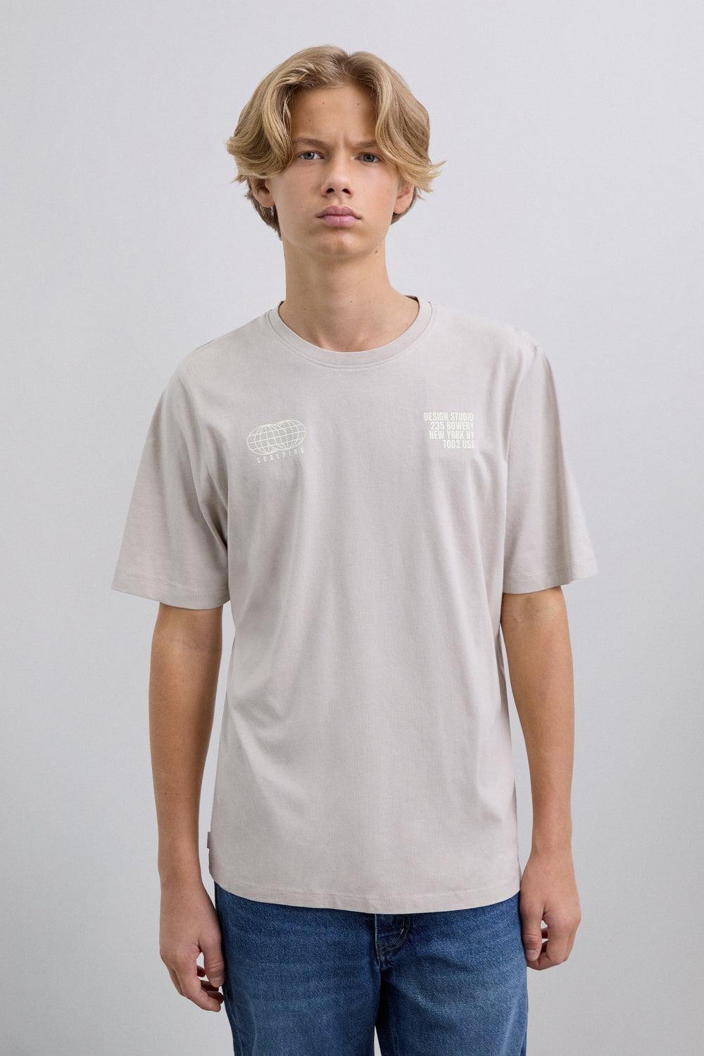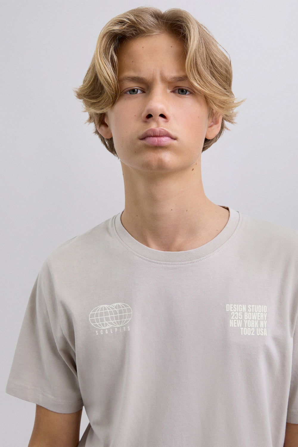 T-shirt confecionada em 100% algodão orgânico. Corte regular fit, decote redondo e manga curta. Padrão atrás e frontal com logótipo.