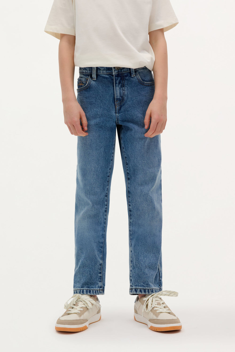 Calças de ganga confecionadas em algodão. Regular fit. Bolsos à frente e atrás. Fecho com botão e zip. Presilhas na cintura. Pormenor de skull no botão e na etiqueta com logótipo no bolso traseiro.