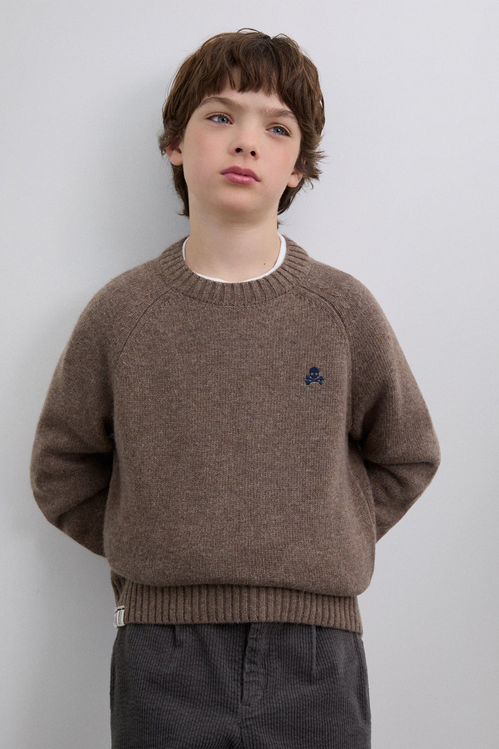 Sweater de manga comprida. Decote redondo. Regular fit. Acabamentos em nervuras. Logótipo bordado à frente.