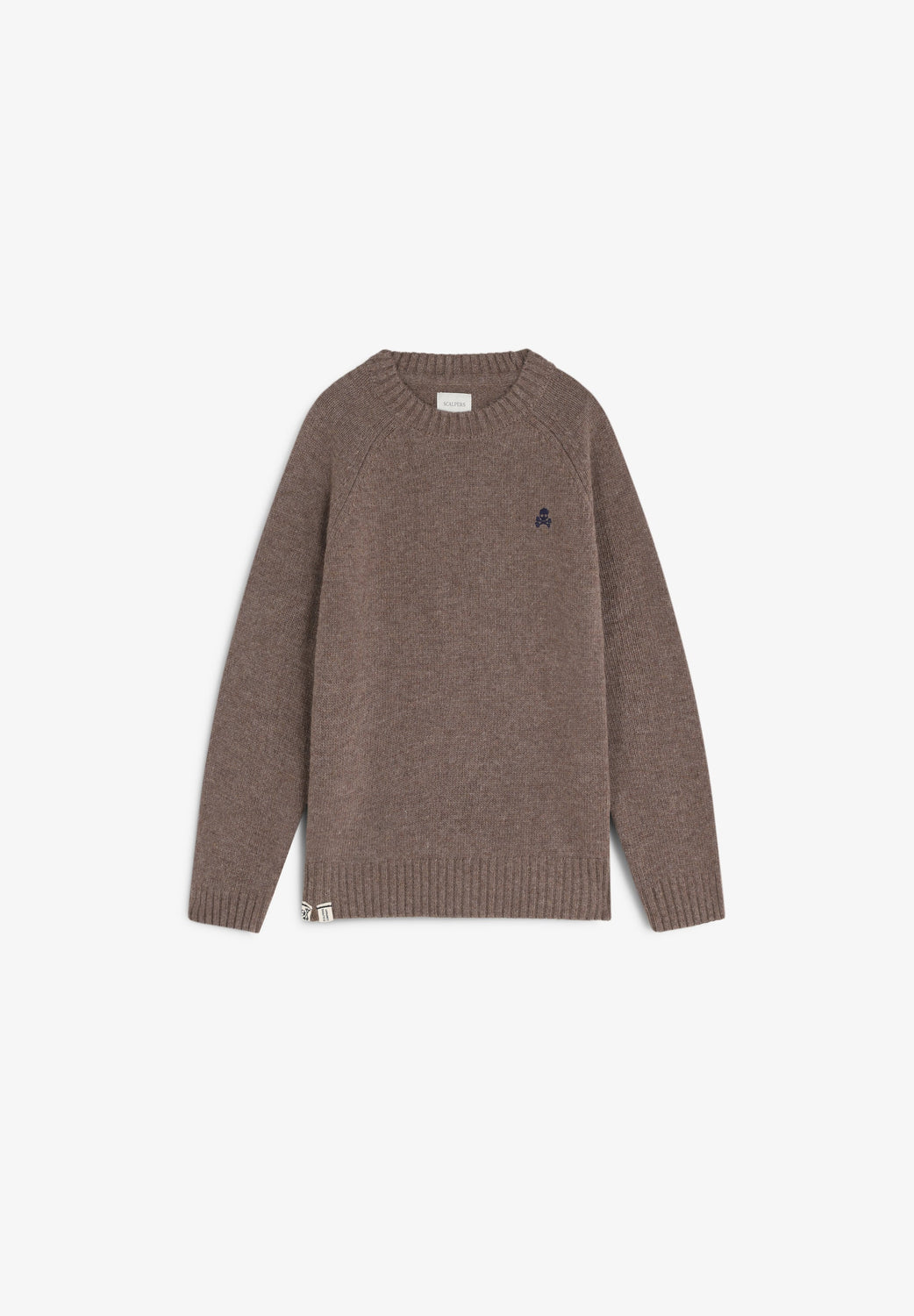 Sweater confecionada em mistura de lã. Regular fit, decote redondo e manga raglã comprida. Skull bordada em contraste.