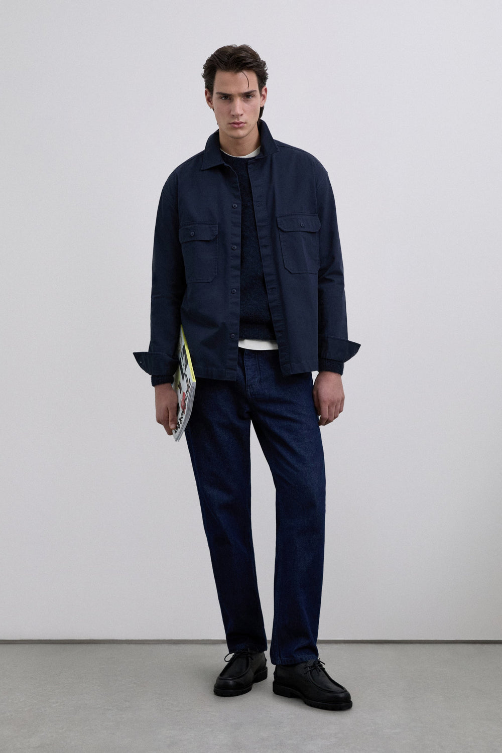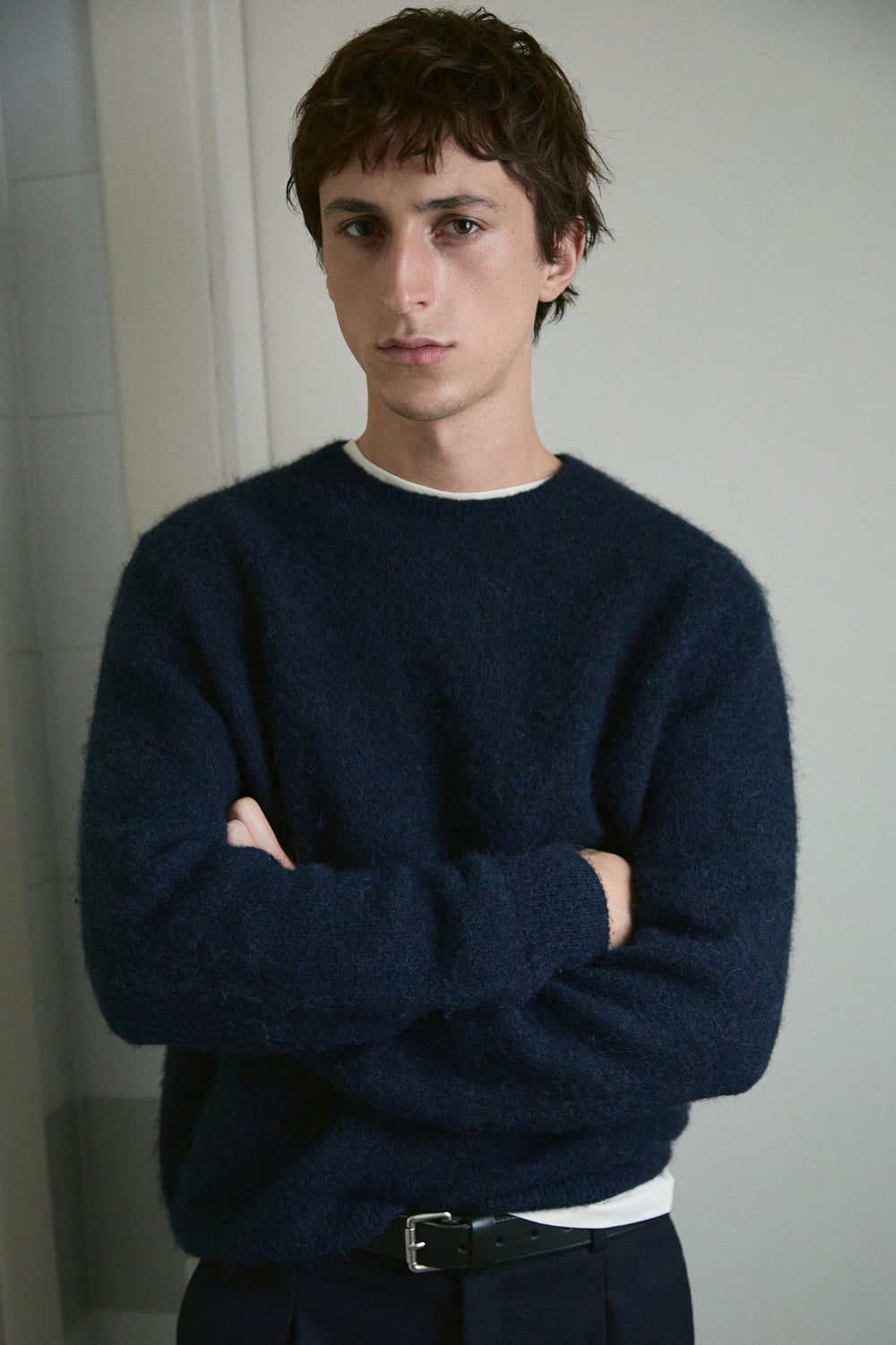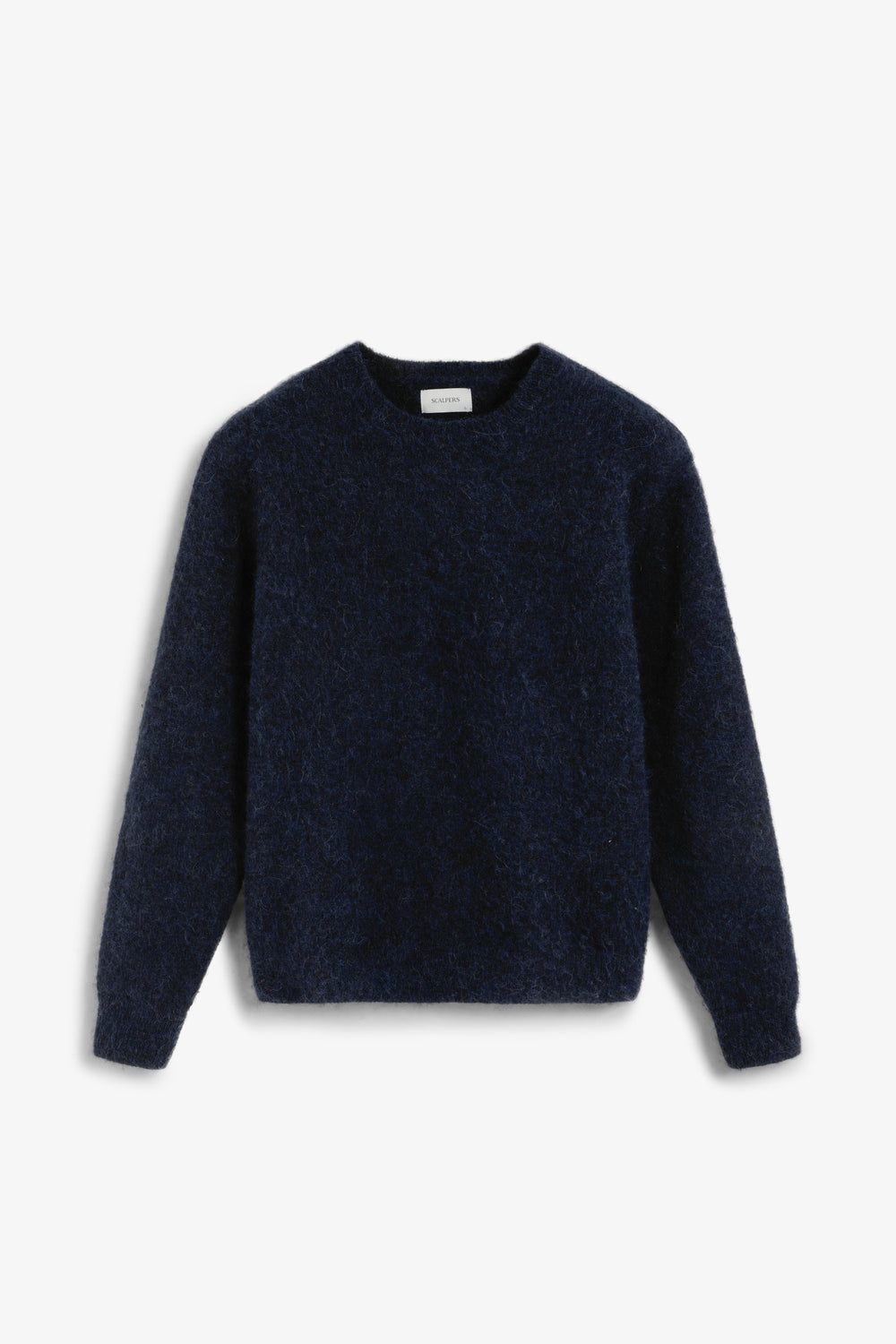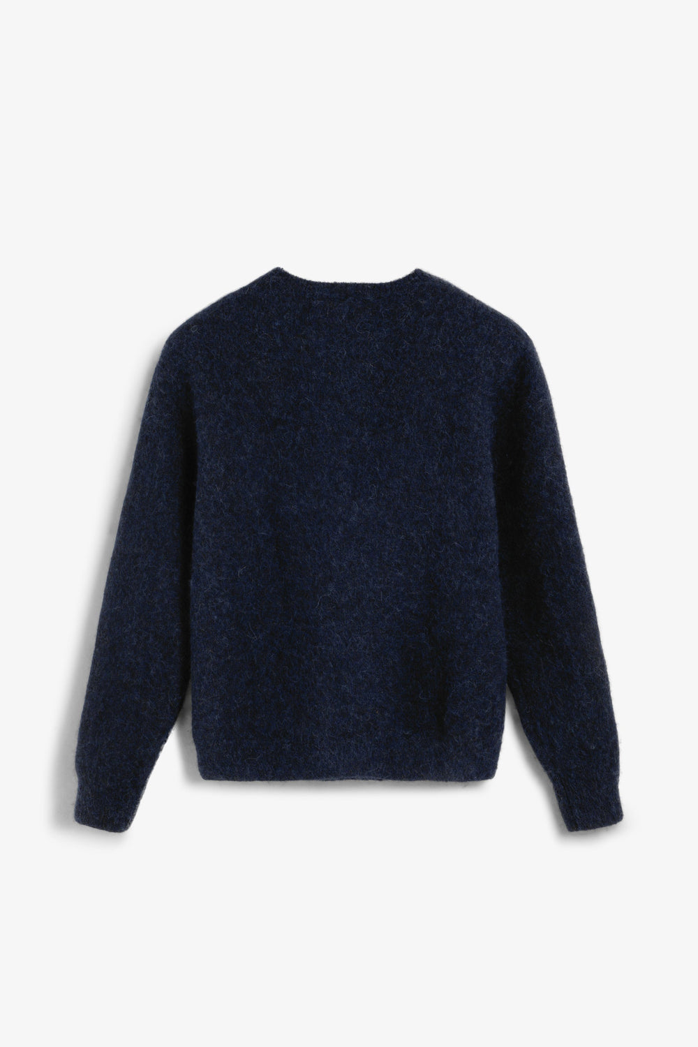 Sweater de alpaca escovada. Decote redondo. Mangas compridas. Corte regular.