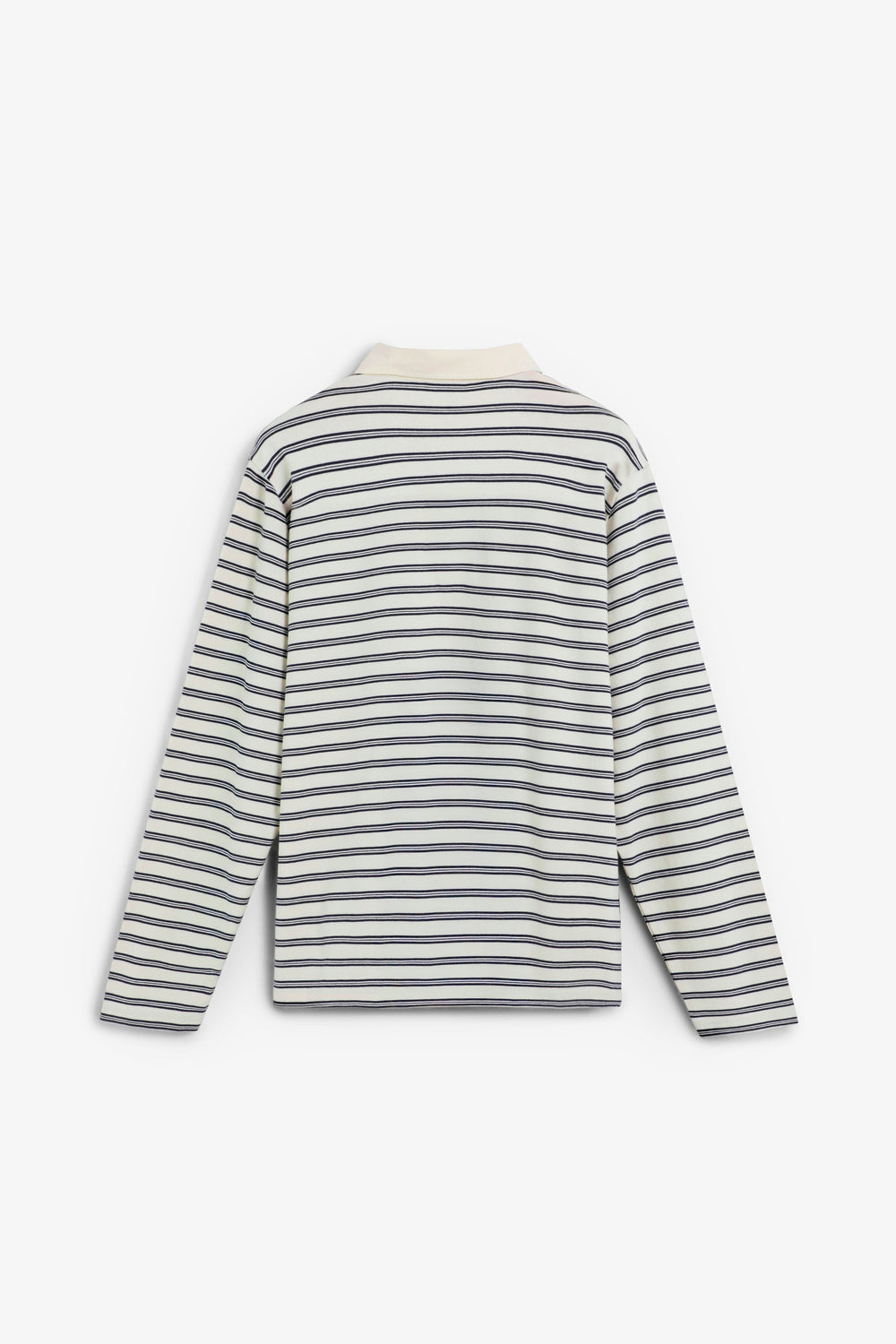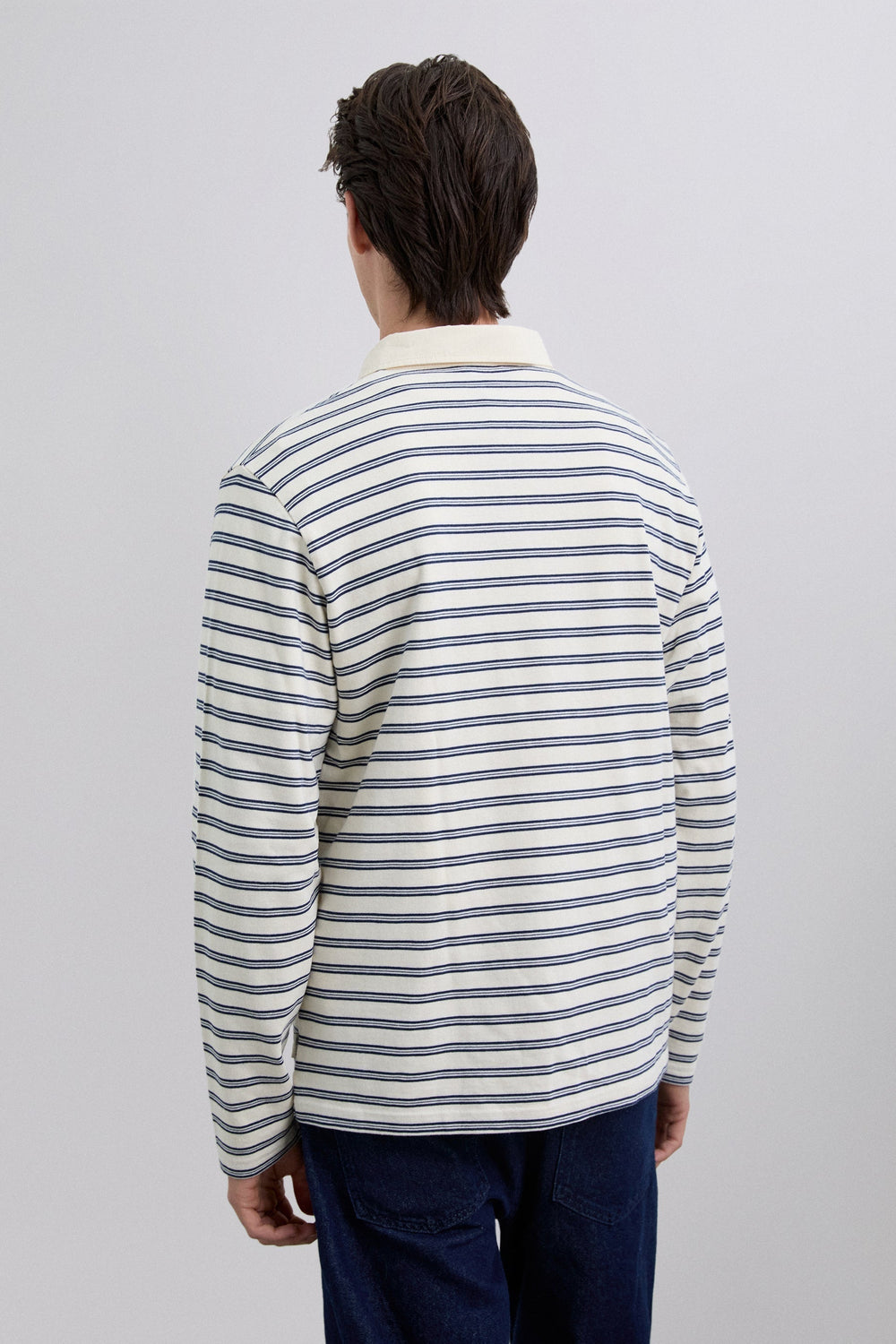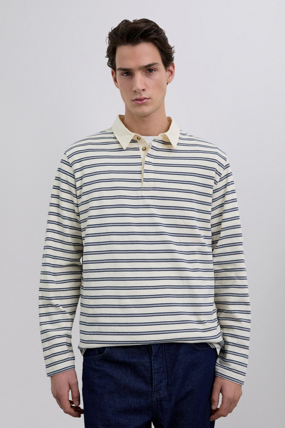 Camisa polo confecionada em tecido de malha 100% algodão BCI. Relaxed fit. Manga comprida. Gola de sarja em contraste. Fecho de quatro botões com placket oculta.