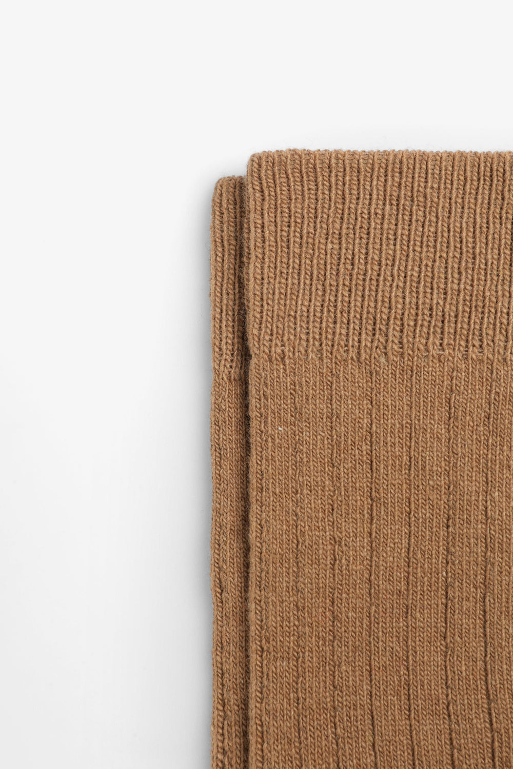Calcetines confeccionados con tejido en mezcla de Cashmere y Lana. Logitud media. Ajuste cómodo. No aprieta el tobillo. Canalé fino. Detalle de logo en planta.