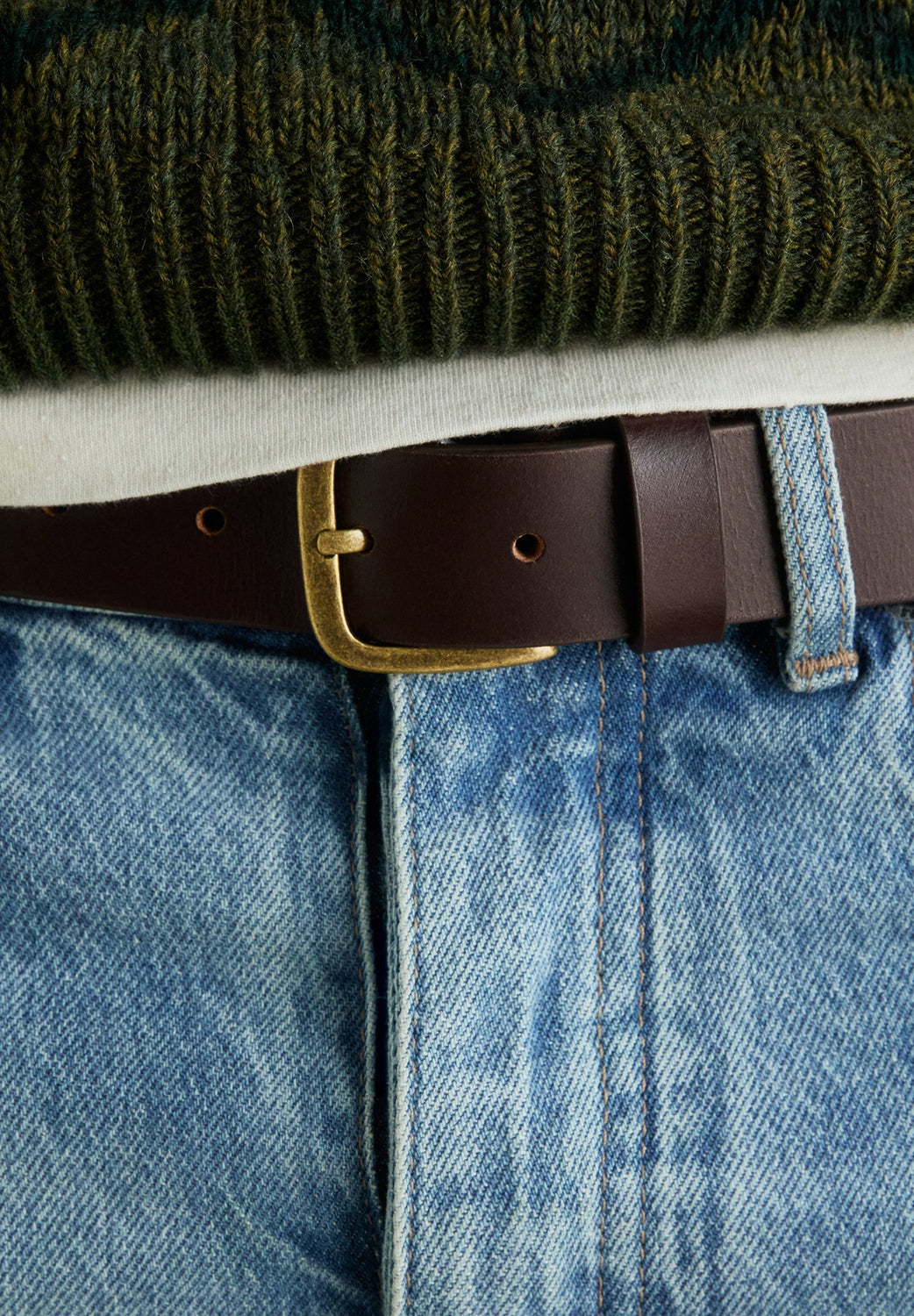 Cinto confecionado em 100% pele com fivela metálica. Logótipo gravado.