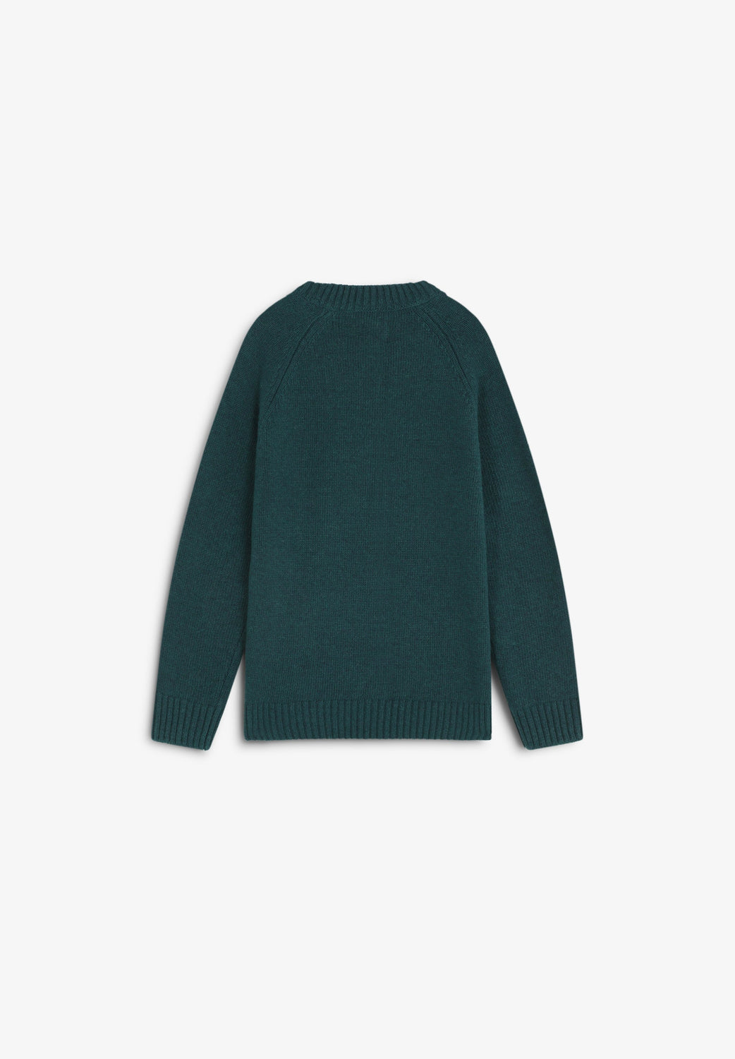 Sweater confecionada em mistura de lã. Regular fit, decote redondo e manga raglã comprida. Skull bordada em contraste.