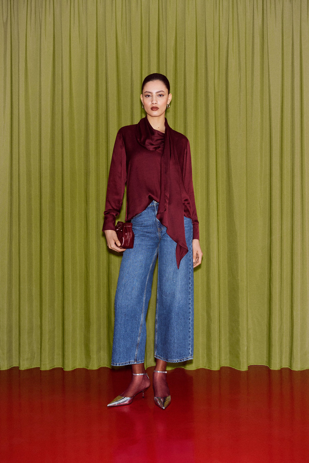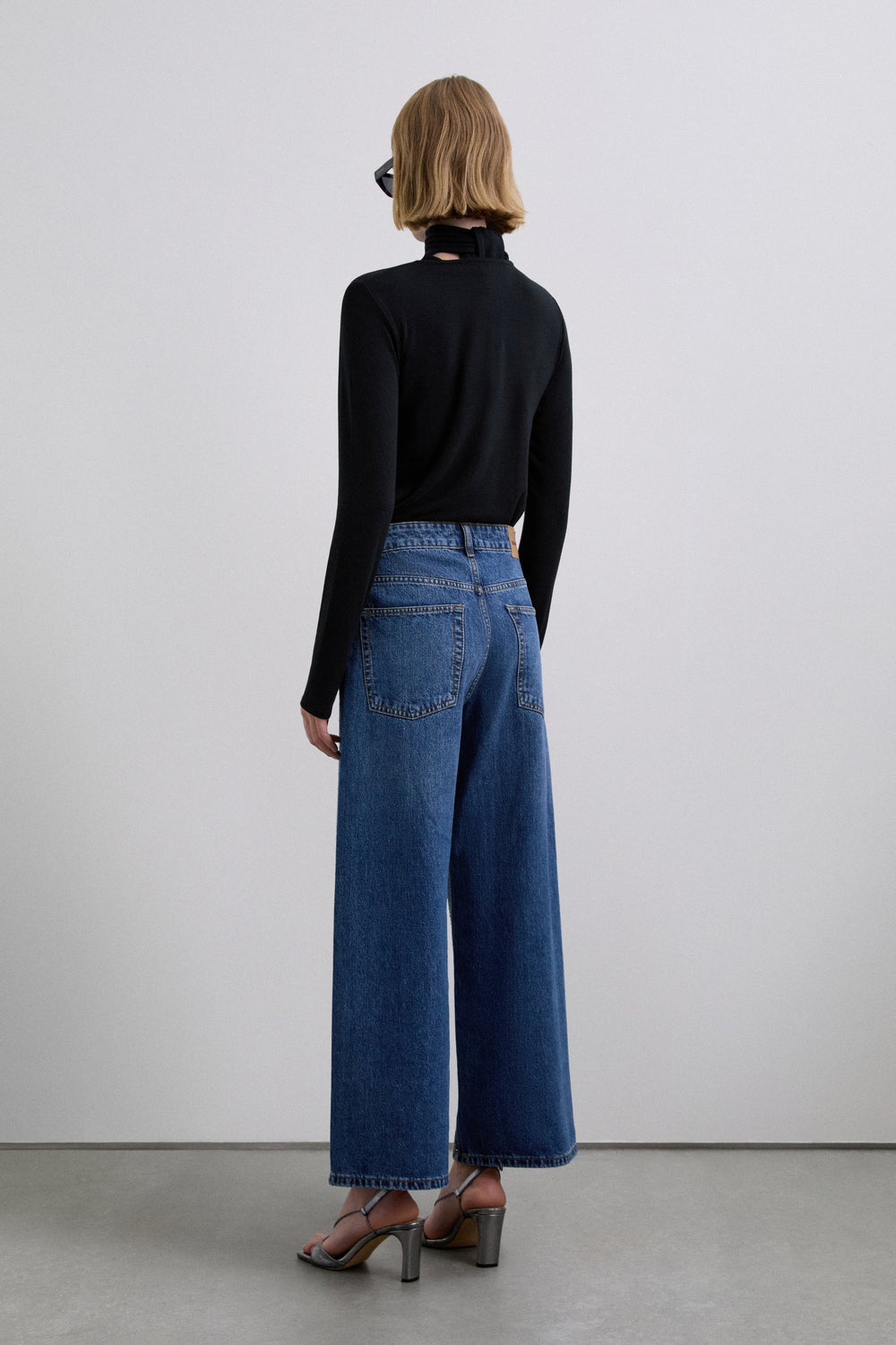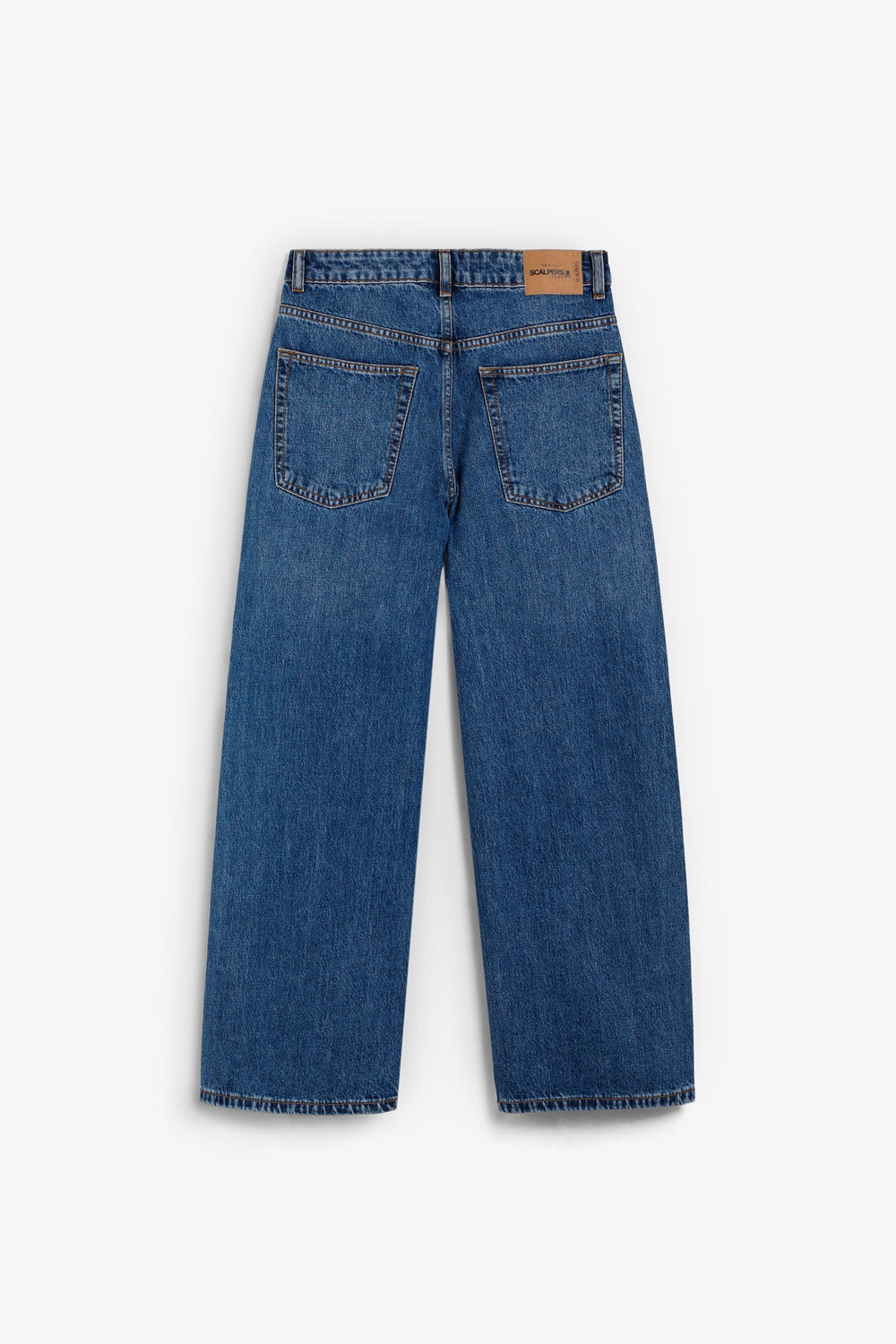 Calças denim confecionadas em 100% algodão, de corte regular fitr, com pormenor de tachas à frente, fecho de correr e botão.