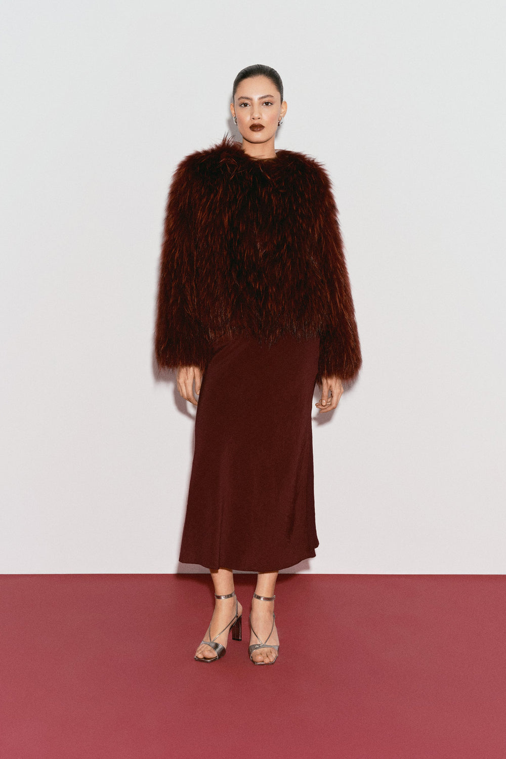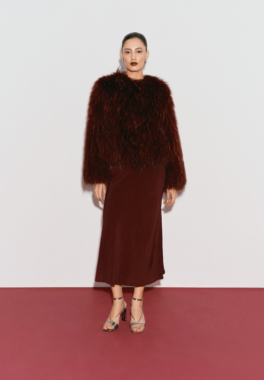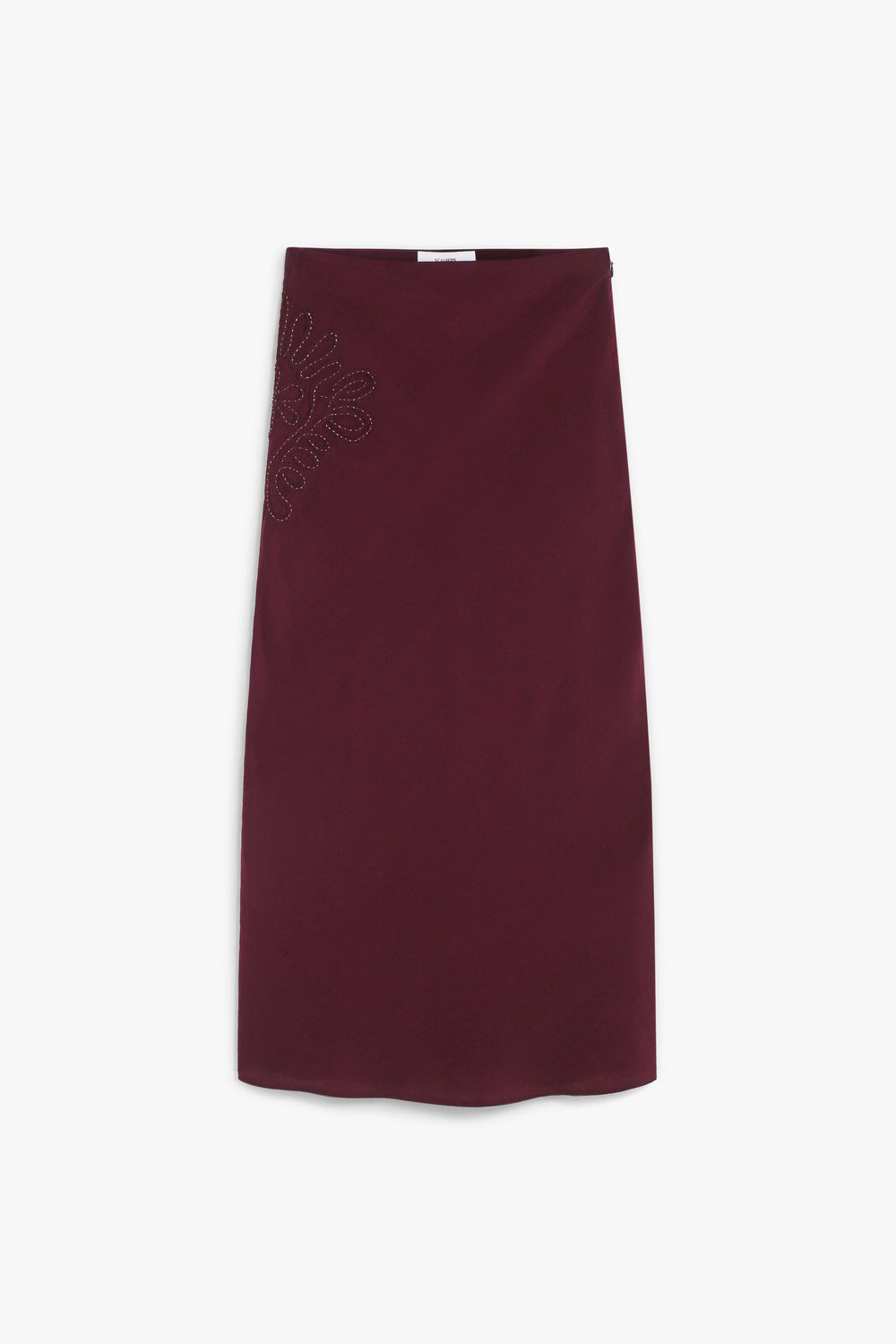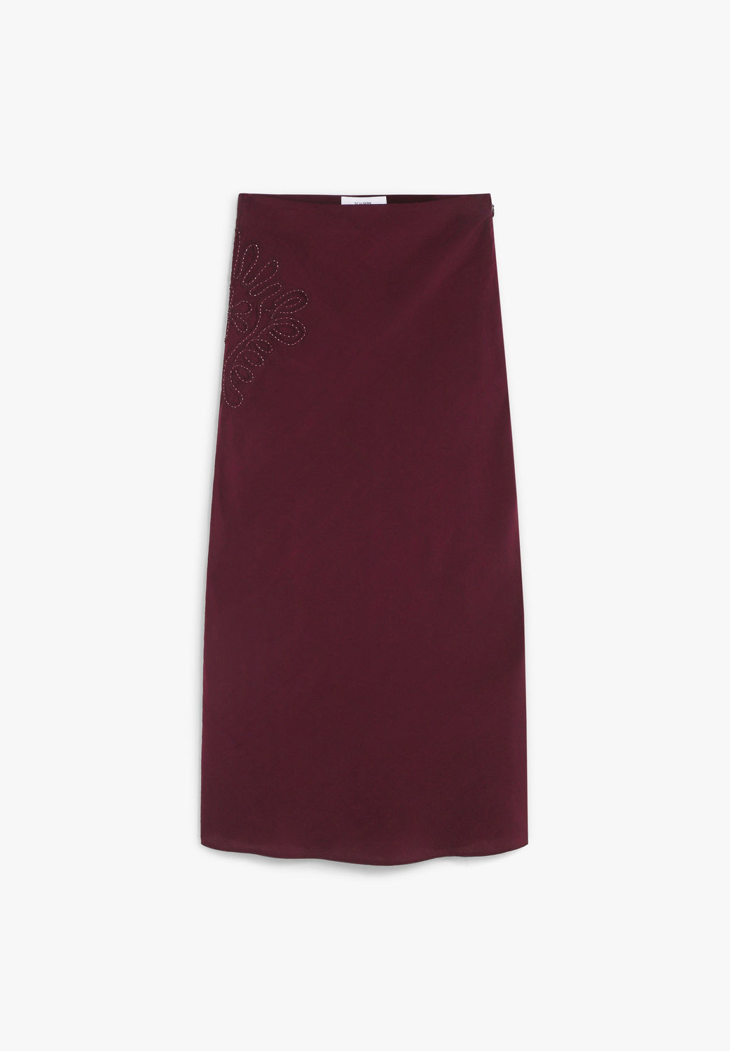 Saia em viés. Mid waist. Tecido fluido. O fecho é um fecho de correr invisível.