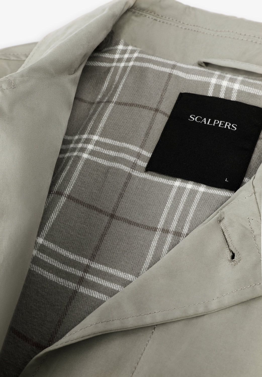 Gabardina com fecho de botões à frente. Gola de camisa. Dois bolsos laterais. Interior forrado com motivos xadrez. Pormenor de etiqueta com logótipo no bolso. Padrão de skull na manga no tom.