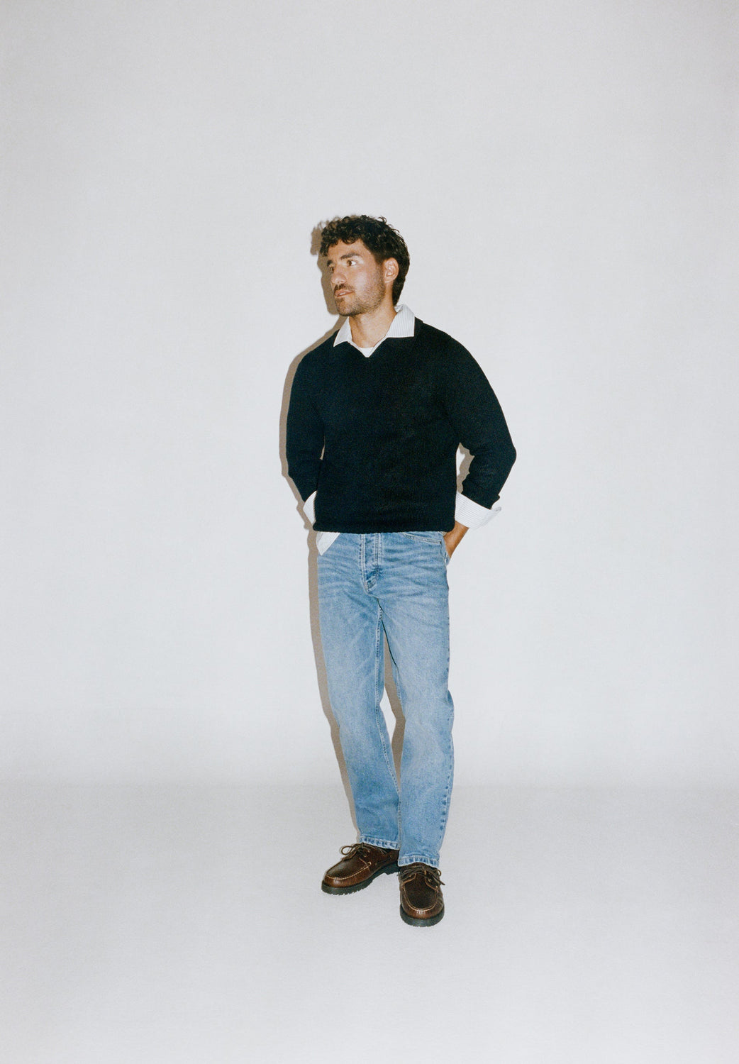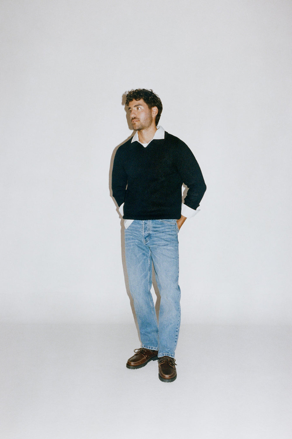 Jeans confecionados em algodão BCI ligeiramente elástico. Regular fit, fecho com botão e zip e bolsos laterais e atrás. Presilhas na cintura.